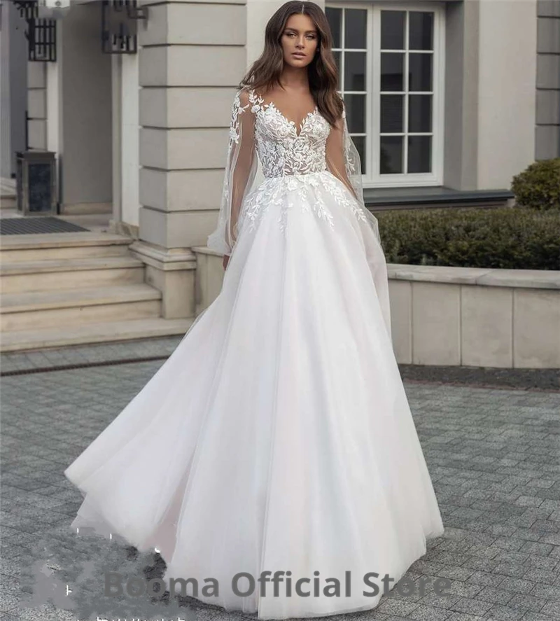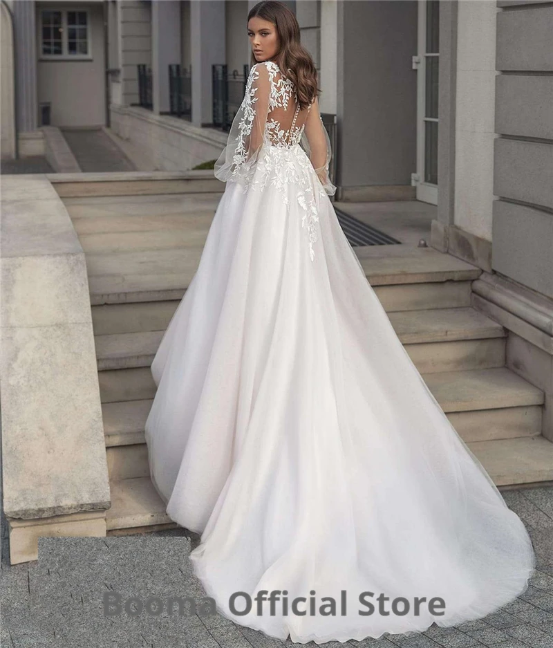 Booma пышные кружевные свадебные платья с рукавами женское 2019 женское платье для пляжной вечеринки с иллюзией
