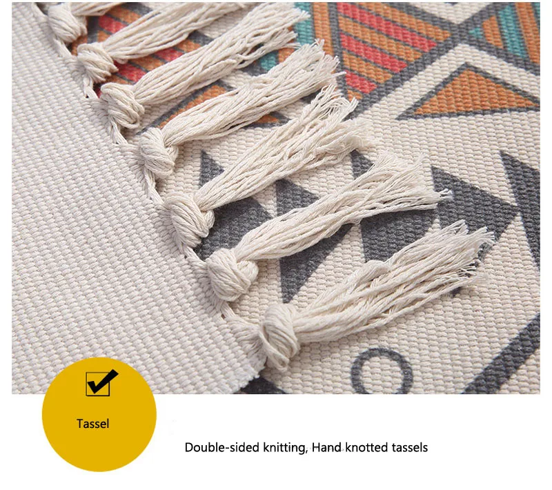 Ковер из хлопка и льна с кисточками, ручная вязка, прикроватный коврик с геометрическим рисунком, гобелен для спальни, домашний декоративный коврик для гостиной