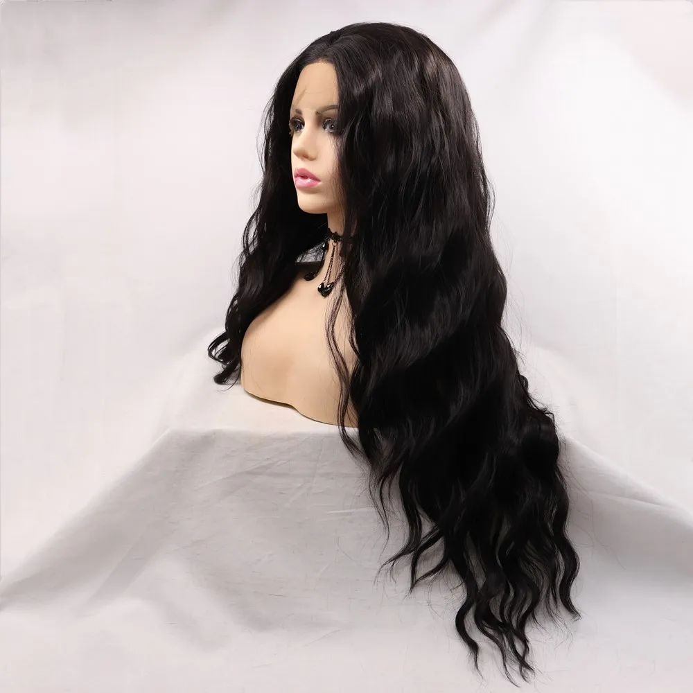 Женский синтетический парик с черными кружевами, средней длины, без клея