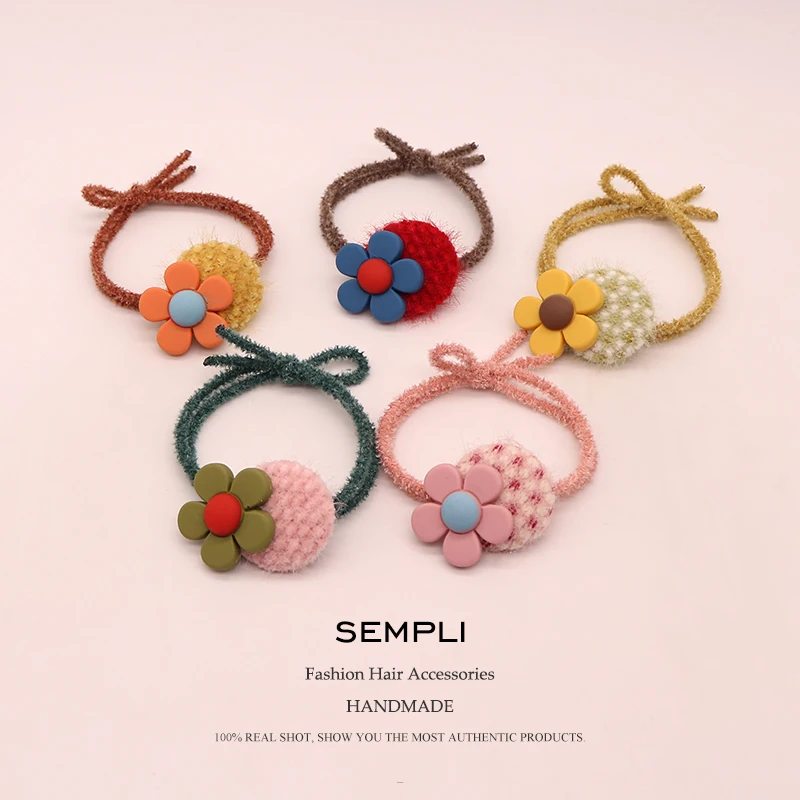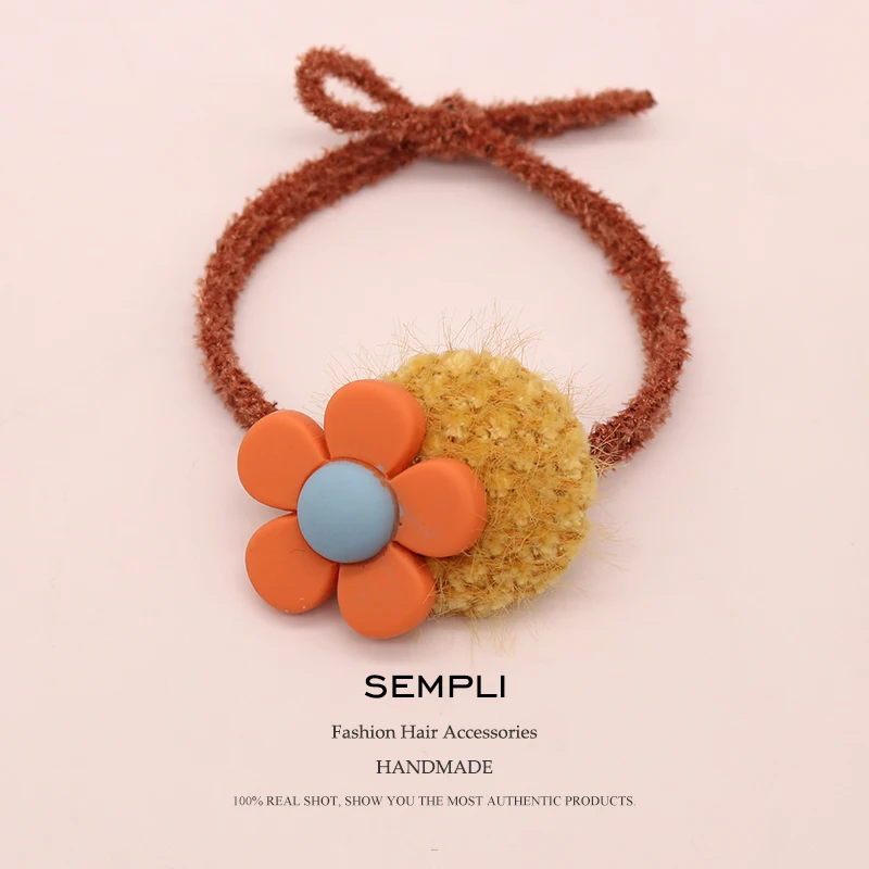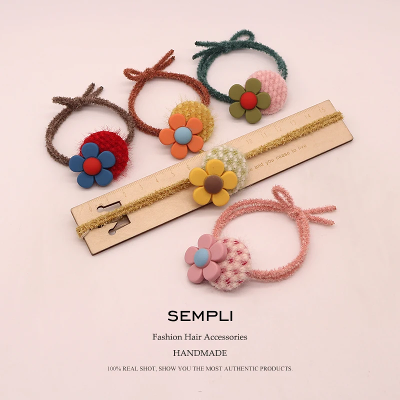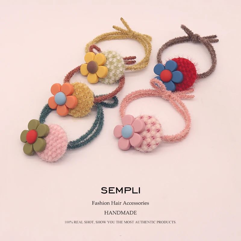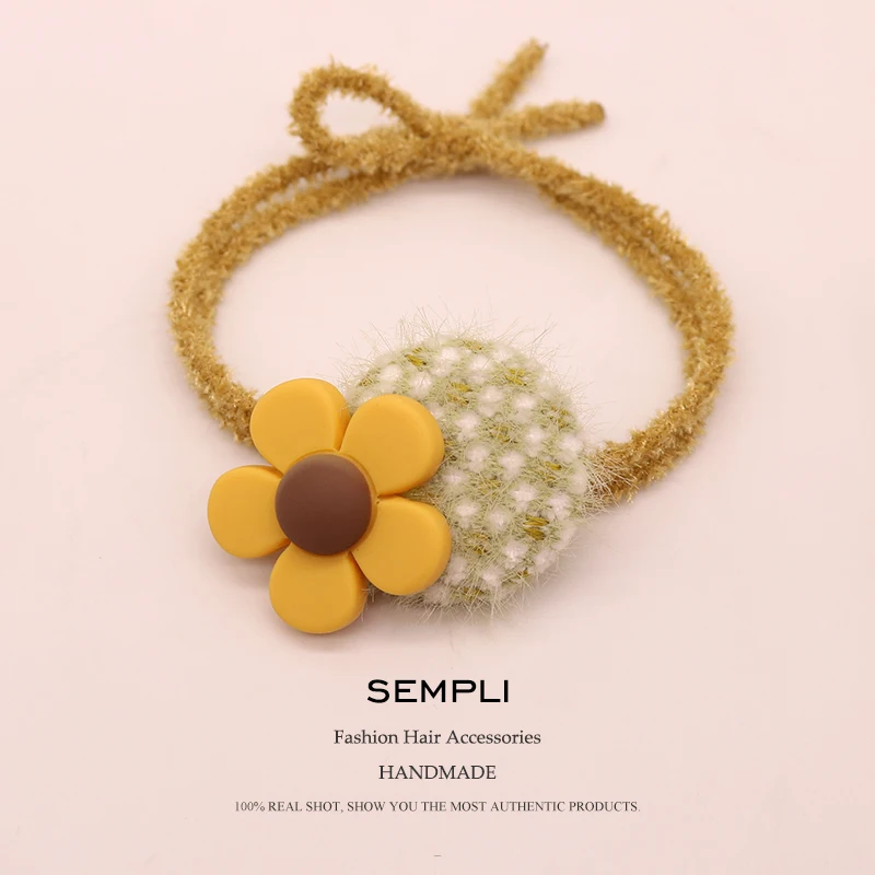 Женские кашемировые резинки для волос Sempli, резинки с подсолнухами, резинки для волос с цветочным принтом, аксессуары для волос