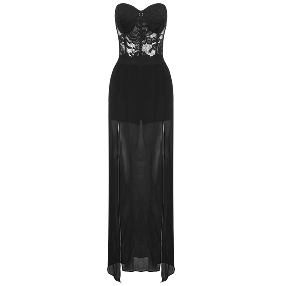 Женское кружевное платье без бретелек CIEMIILI, черное, белое однотонное Бандажное платье до щиколотки, без рукавов, 2021