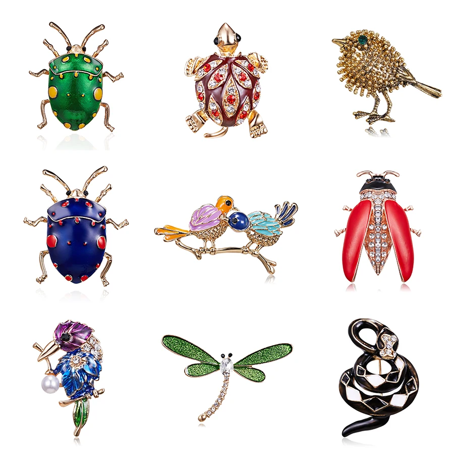 Ветка с двумя птичьими листьями жемчуг Божья коровка жук Стрекоза черепаха Стразы живопись масляное насекомое Животное Брошь Золотая нога женские ювелирные изделия