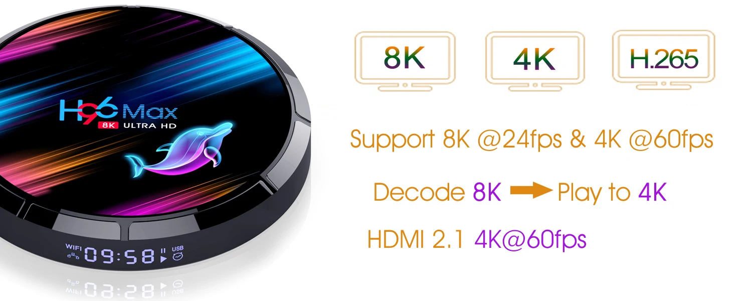 -Процессор: Amlogic S905X3 64-разрядный четырехъядерный процессор ARM® Cortex™A55;-GPU: G31™Графический процессор MP2-ОС: Android 9,0;-Память: DDR3 4 Гб, флэш-память 32/64/128 Гб;-Поддержка: H.265, 8K @ 24fps, 4K @ 60fps, HD 2,1, USB3.0;-Поддержка: 100/1000M Ethernet, 2,4 и 5G двухъядерный процессор Wi-Fi;-Поддержка: Bluetooth 4,0 (поддержка голосового пульта)-H.265 HEVC MP-10@L5.1 до 8K x 4K @ 24 fps