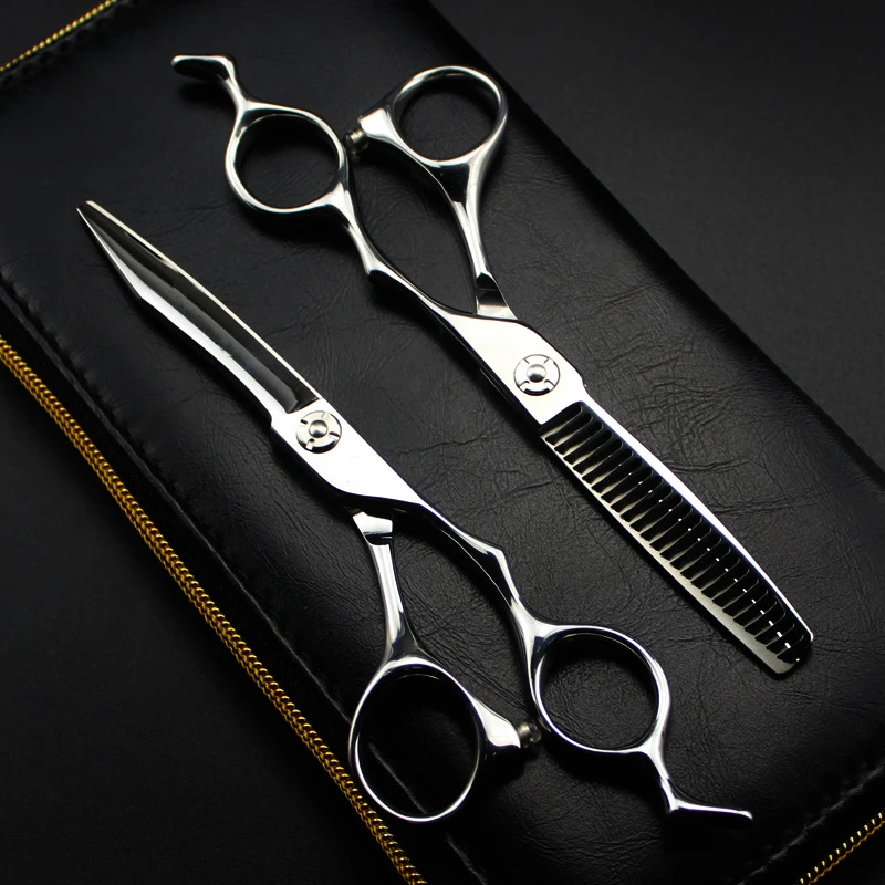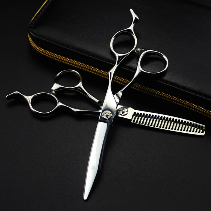 Профессиональный 6,0 5,5 Парикмахерские ножницы набор 304C сталь Парикмахерская Резка волос прямые истончение клипер Бесплатная доставка