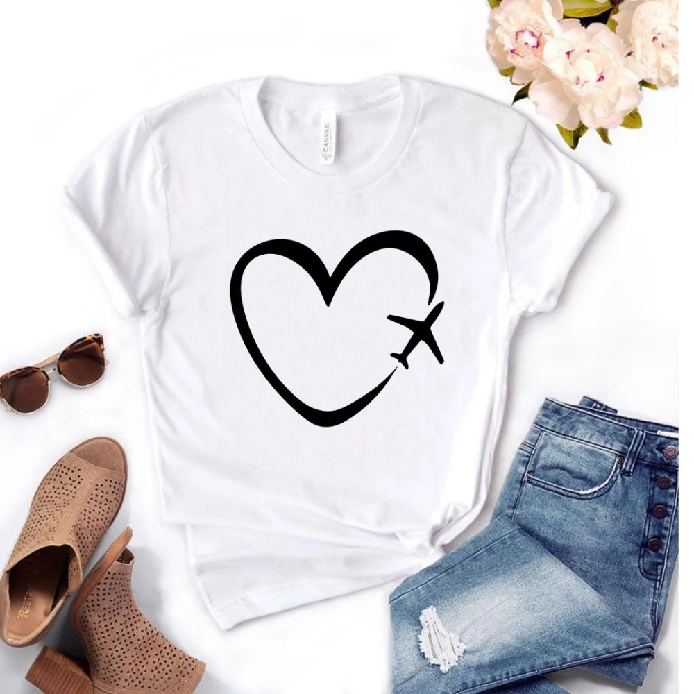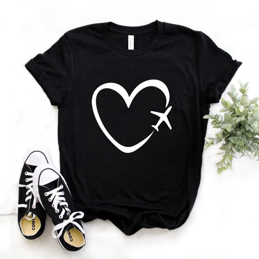 2021 Новая мода весна прибытие путешествие самолет сердце любовь печать женская футболка хлопок Повседневная забавная футболка подарок Девушка Топ Футболка L962