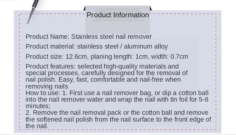 Посылка включает в себя: 1x инструмент для снятия гель-лака с ногтей стержень
