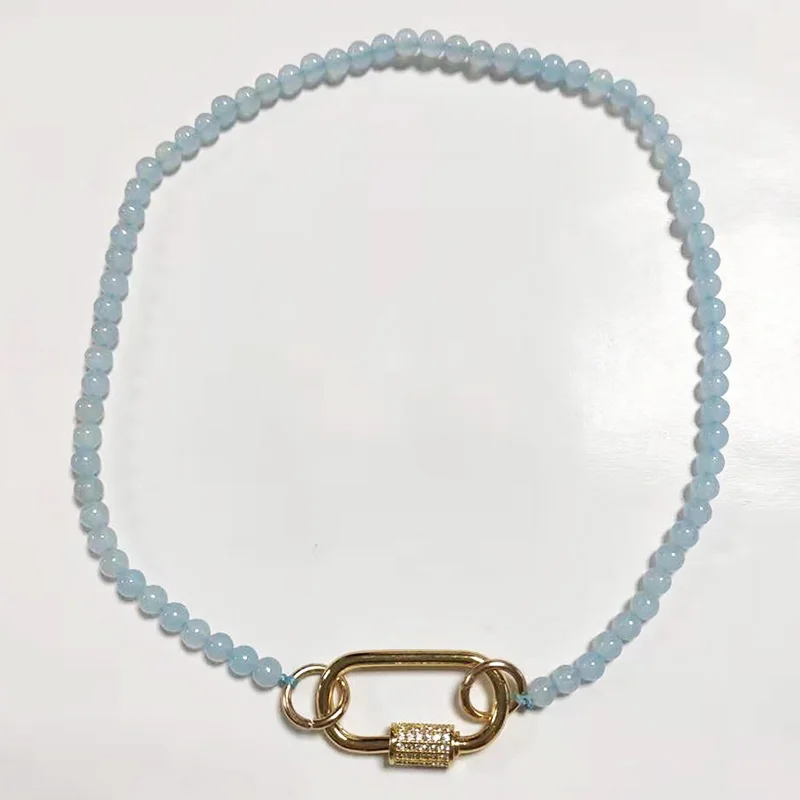 Изысканное красивое ожерелье из голубых стеклянных бусин с кубическим цирконием, подвеска-чокер, женские модные короткие аксессуары