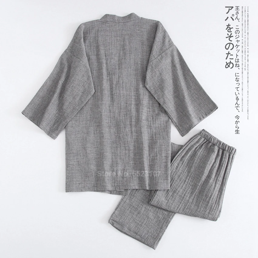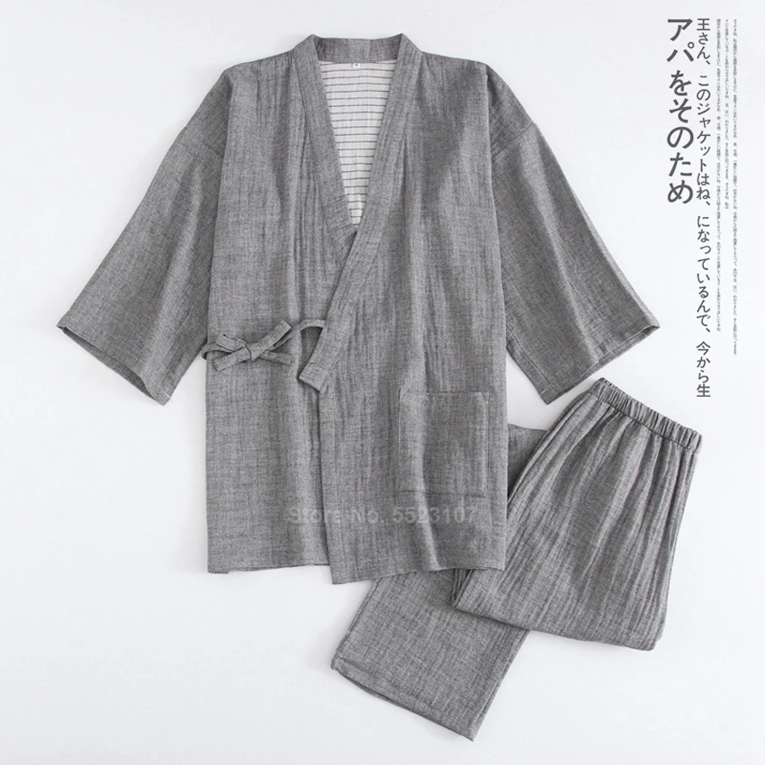 Кимоно для мужчин традиционное японское, пижамный комплект, чистый хлопок, комплект одежды для сна самурая, юката для купания, ночная рубашка