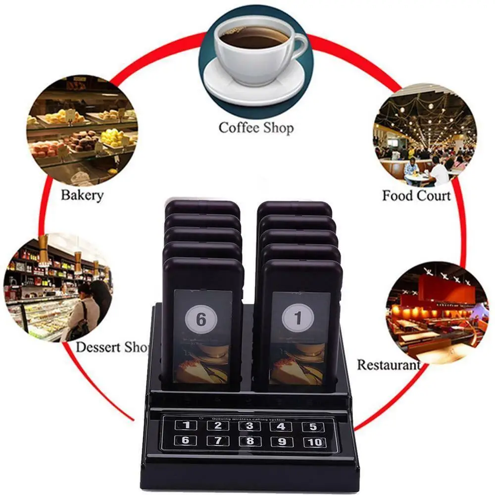 Система вызова официанта, пейджер для ресторанов, система вызова официанта, 1 зарядное устройство + 10 приемников