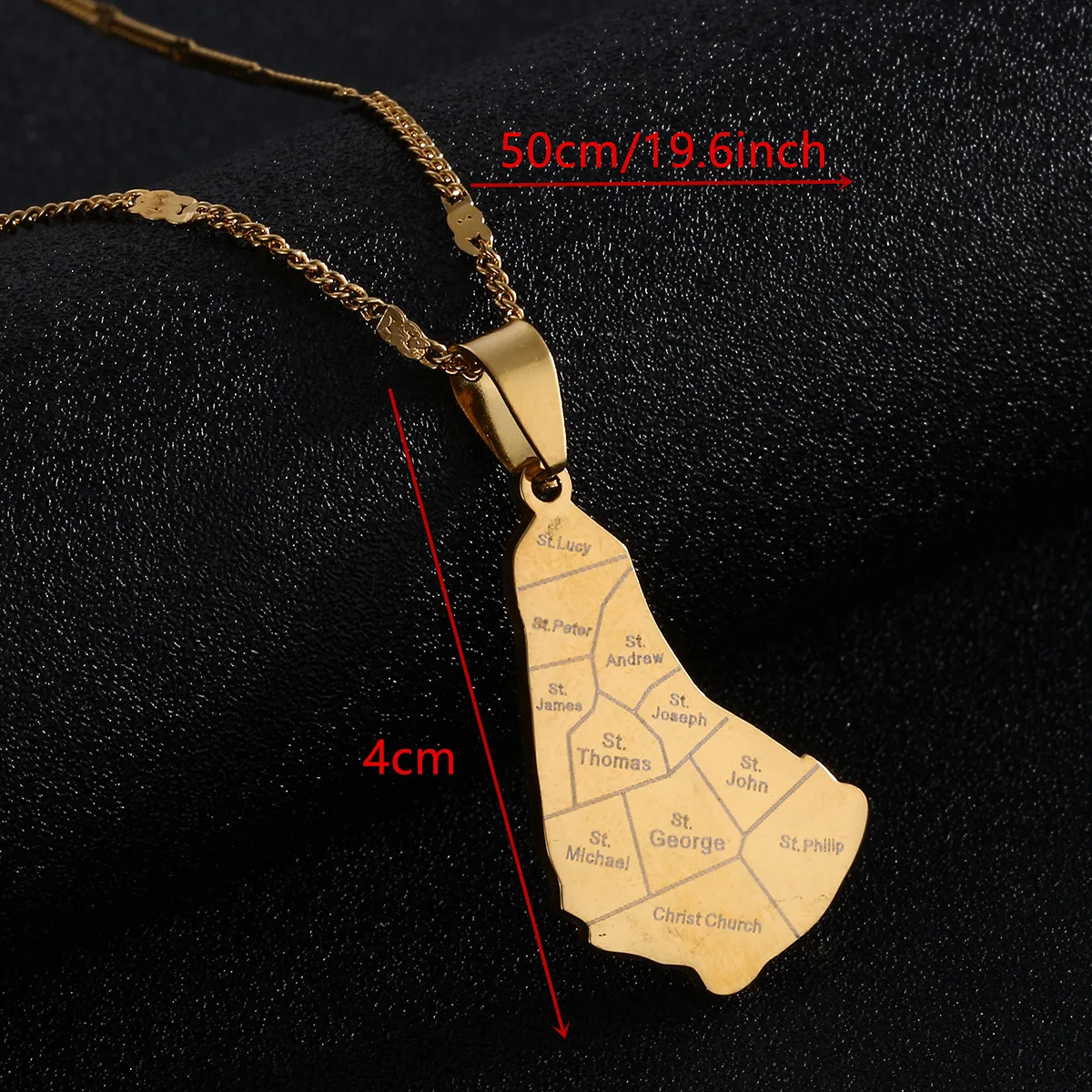 Ожерелье с подвеской из нержавеющей стали с изображением карты Барбадоса, цепочка золотого цвета с картами, ювелирные изделия