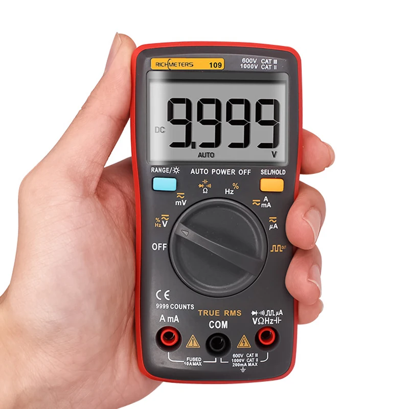 RM109-это первый в мире цифровой мультиметр размером 9999 пальм.