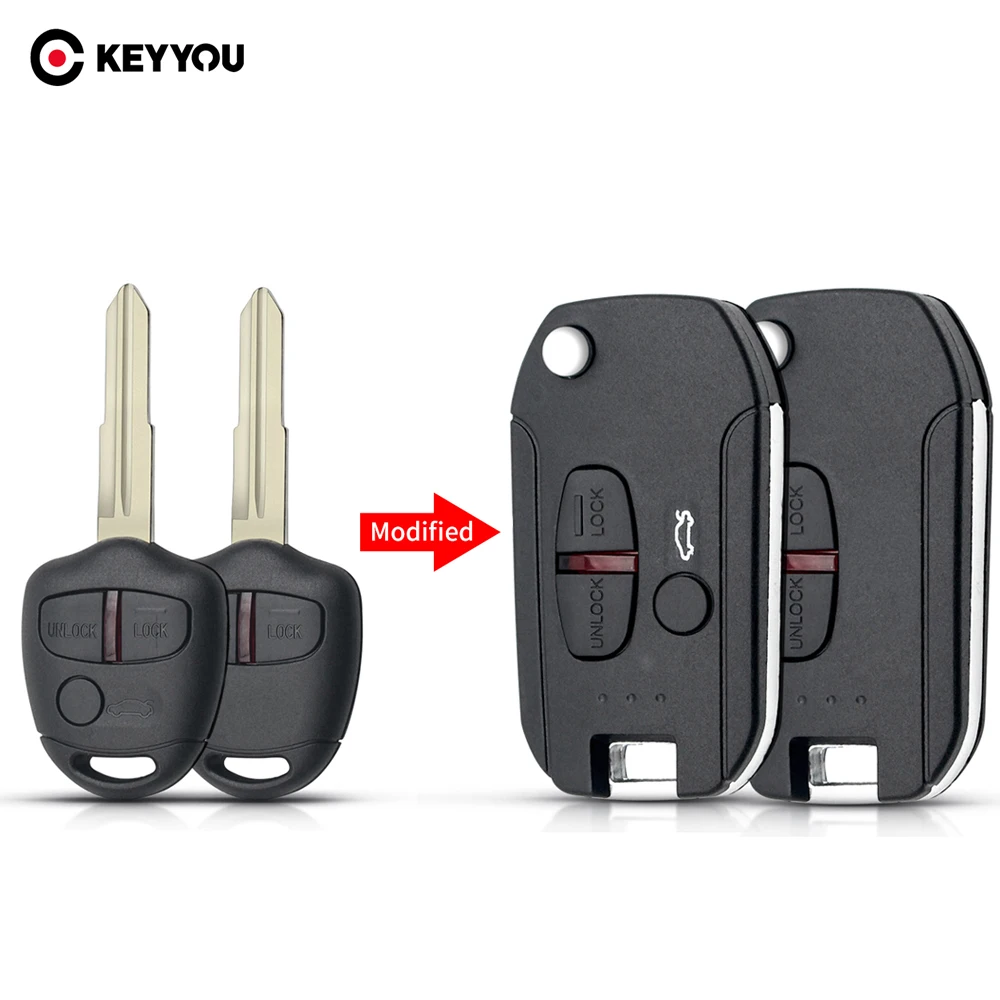 Складной автомобильный чехол KEYYOU с 2 кнопками для Mitsubishi Outlander Pajero Lancer Evolution Grandis
