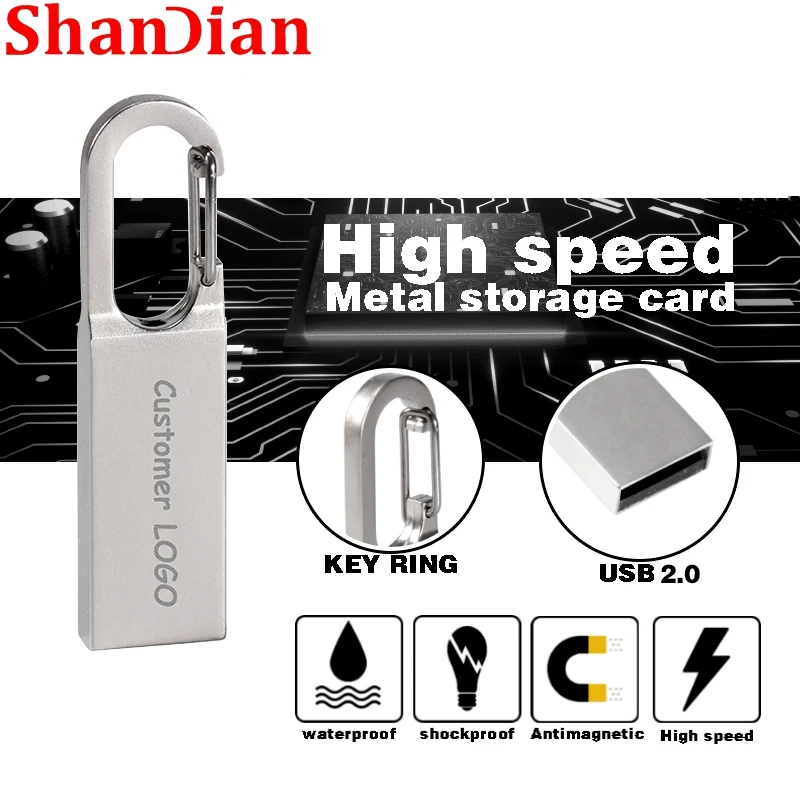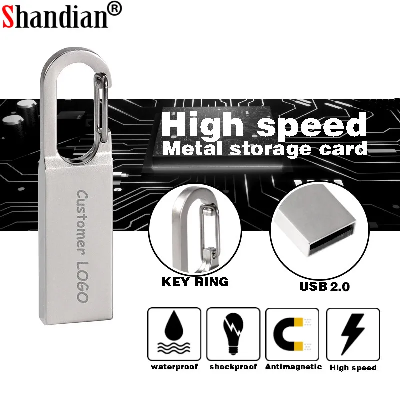 SHANDIAN металлический USB флэш-накопитель 16 Гб Флешка флеш-накопитель 128 Гб Водонепроницаемый флеш-накопитель 8 ГБ 4 ГБ usb диск на ключ