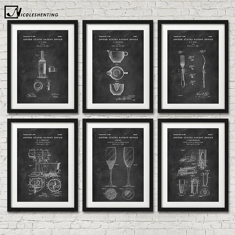 Кухня стены искусства винтажный постер ретро Черный Белый лакированная печать холст живопись декоративная картина столовая украшение дома