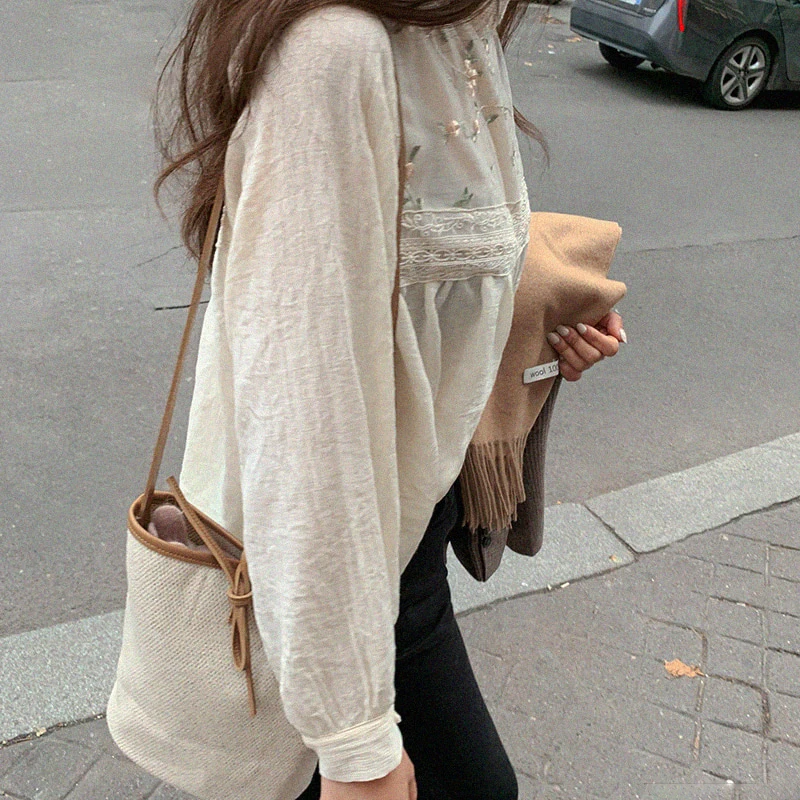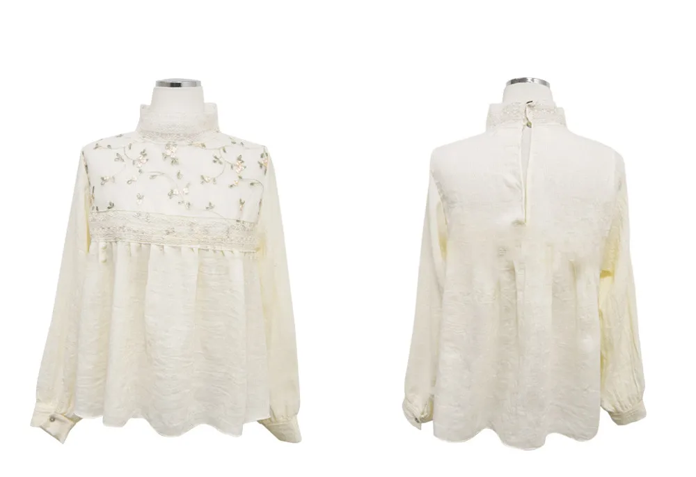 Женская кружевная блузка с воротником-стойкой, с цветочной вышивкой