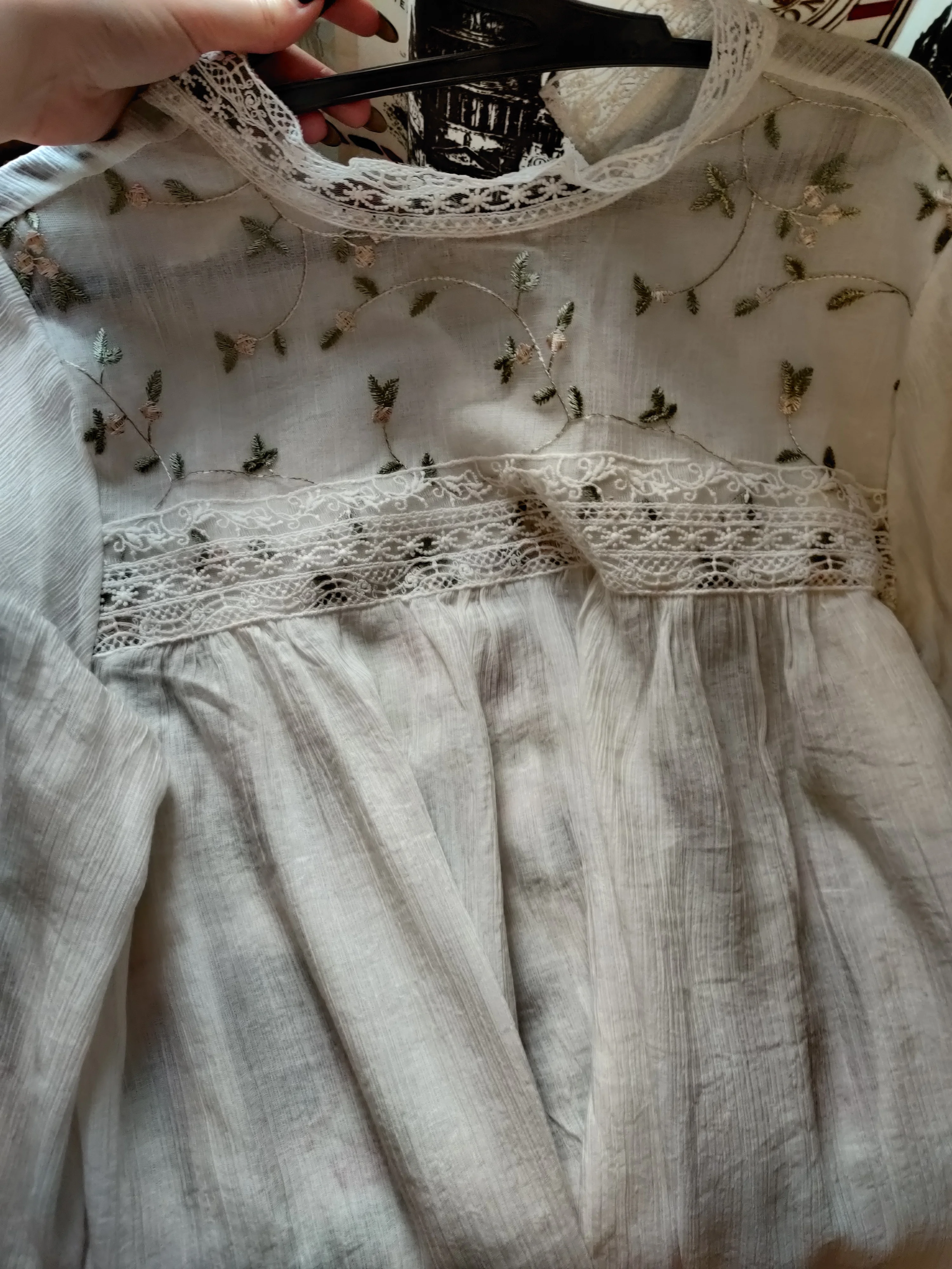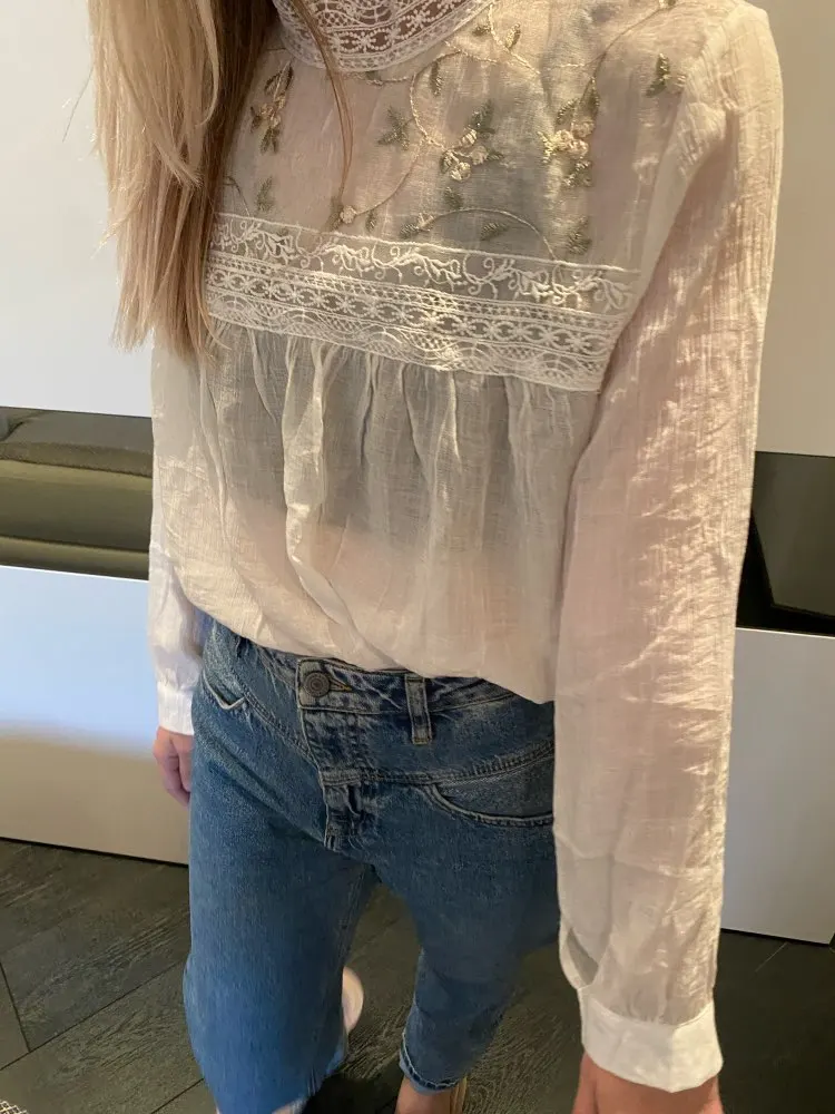 Отличная блузка, качество очень хорошее. Пару ниток можно обрезать, все петельки для пуговиц на месте, швы ровные. Блузка очень мягкая, красивые кружева и вышивка. Заказ быстро отправили, дошёл за 16 дней до рнд с другой посылкой.