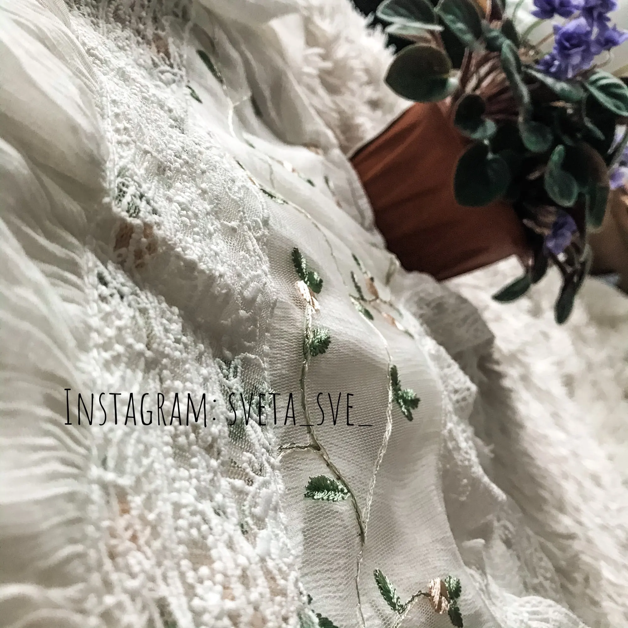 Очень нежная ткань, цвет молочный. Спасибо :)
