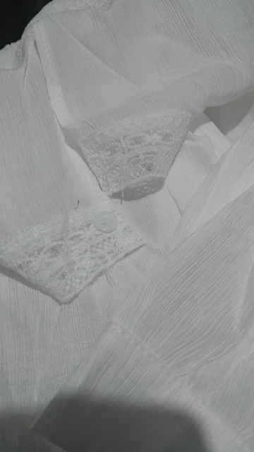 Этот продавец меня удивил! Доставка невероятно быстрая. За неделю она пришла ко мне. Кофточка очень красивая, но полностью синтетическая. Цвет не бежевый, а белый. Размером она S, на больший размер плечи могут быть маловатыми. Обратите внимание, петелка для пуговки не нужна, в кружевах есть отверстие для неё! Спасибо большое продавцу за супер скорость и за браслетик!