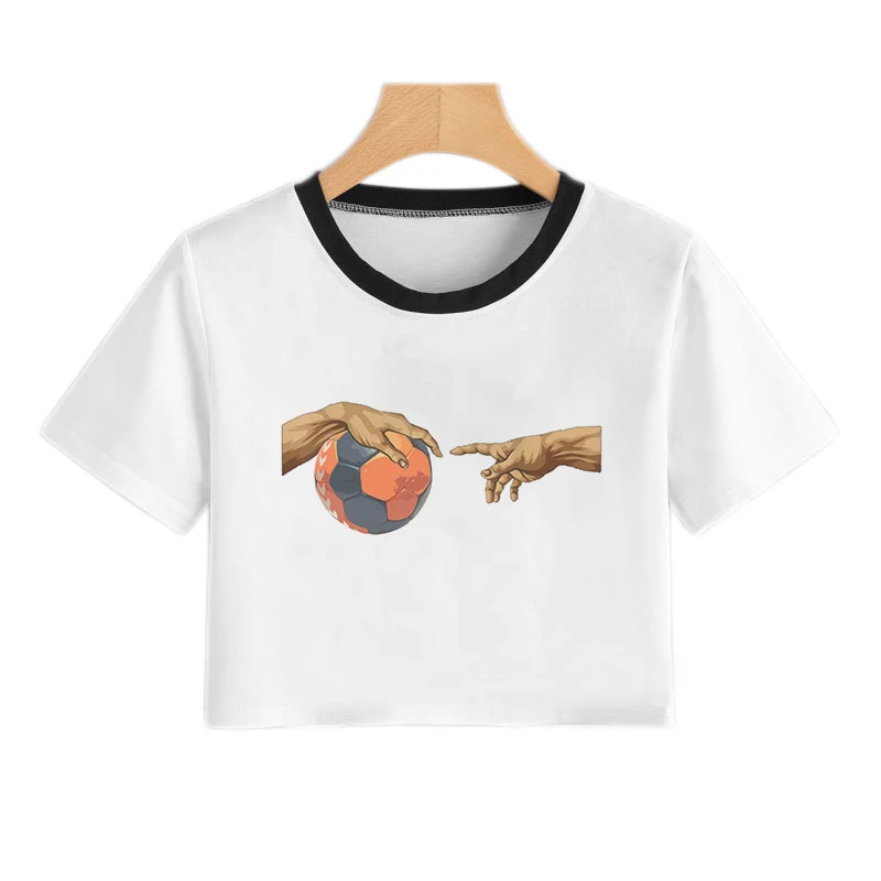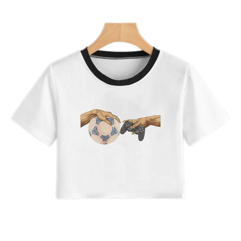 Женский короткий топ с рисунком Сакуры и карт, летняя модная футбол...
