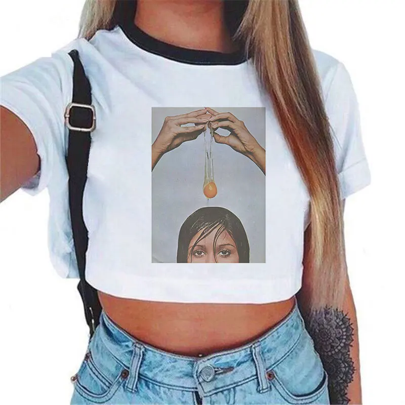 Кроп-топ женский с коротким рукавом, модная пикантная белая футболк...