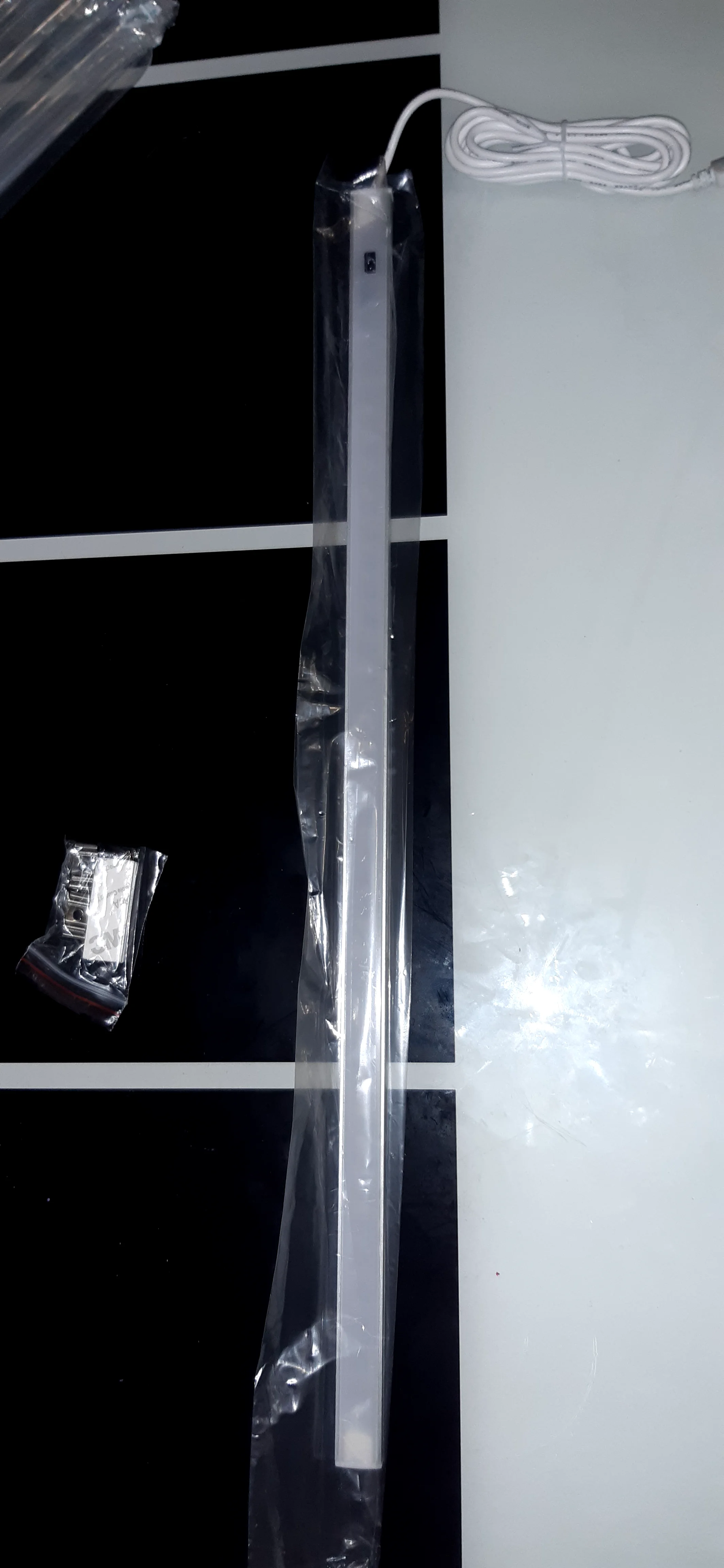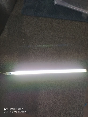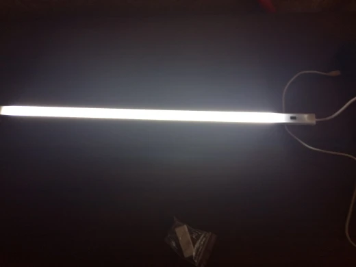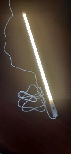 Лампа шикарная, с датчиком движения. Все работает исправно. Легко закрепила на двусторонний скотч, который шел в комплекте. Но так же в комплекте шли несколько шурупчиков и специальные штучки для крепления лампы (мне не пригодились, так как дырявить поверхность шкафа не собиралась). Шнур USB, длинный, около 2 метров. Зону освещает достаточно ярко (фото сделано в полной темноте). Запаковано было надежно, ничего не повредилось. Довольна, рекомендую к покупке.
