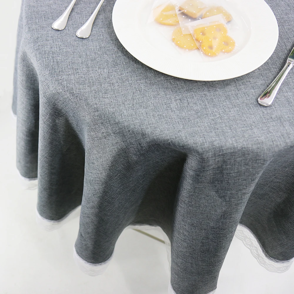Круглая скатерть в деревенском стиле, серая круглая скатерть из хло...