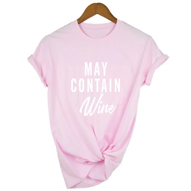 Женская футболка с надписью May Contain Wine, Повседневная футболка с коротким рукавом и графическим принтом, футболка на алкогольную тематику