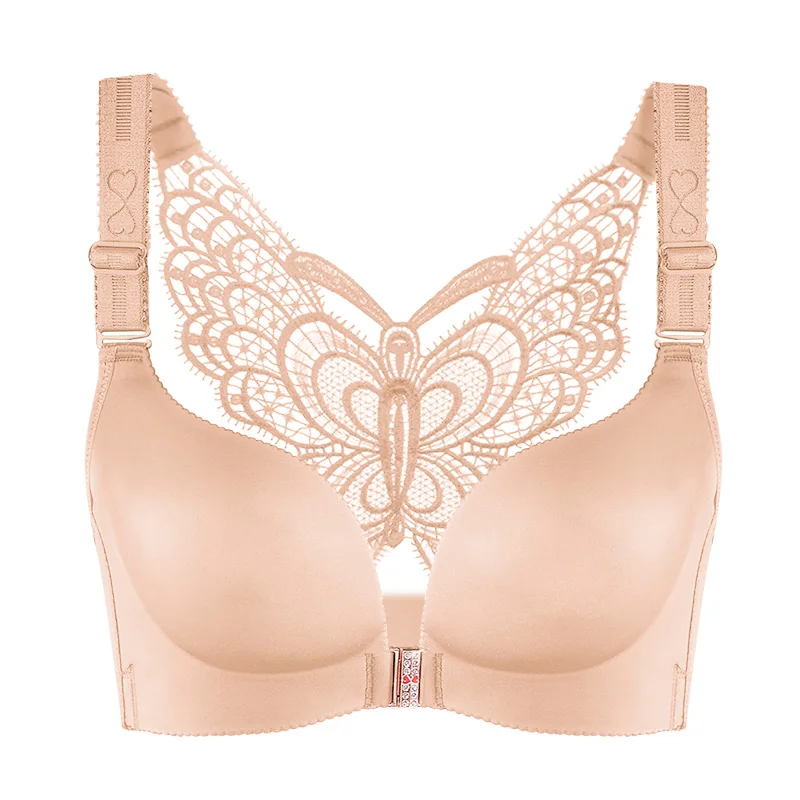 Бюстгальтер с пряжкой спереди, сексуальный бюстгальтер с бабочкой на спине, большой размер, толщина мм 200 Цзинь, чашка 34, увеличивающий Размер, женские бюстгальтеры размера плюс, 120CDE