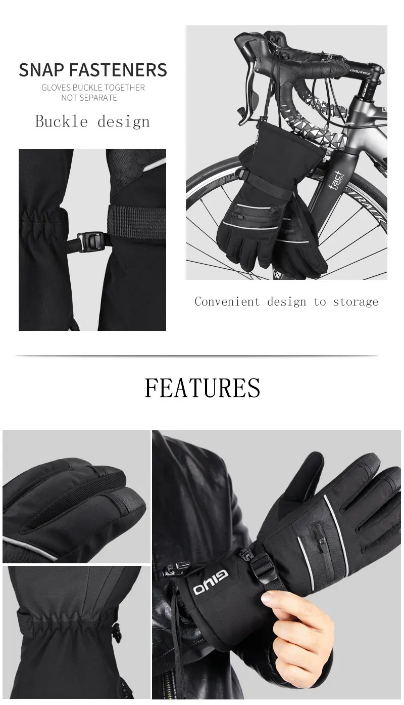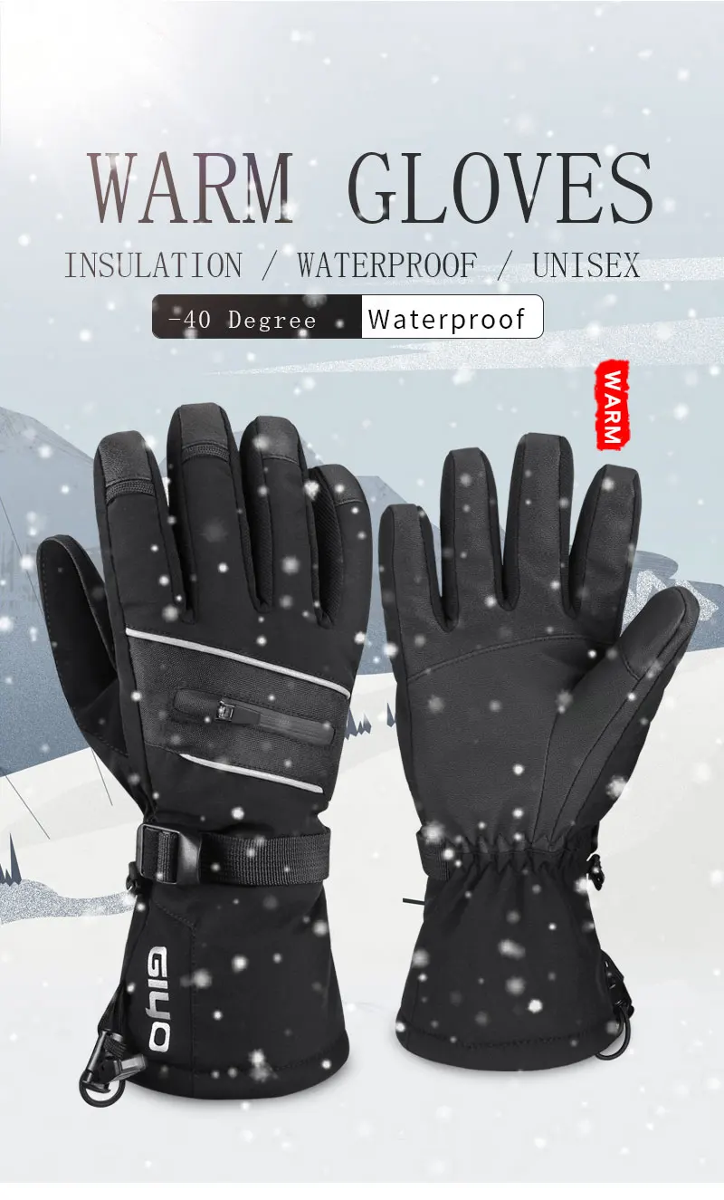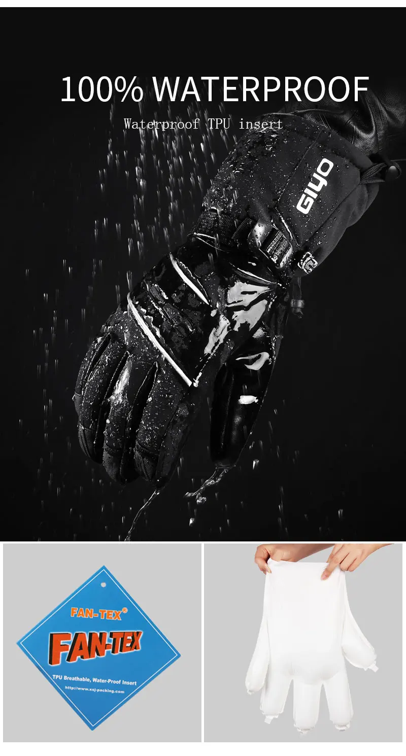 Мужские лыжные перчатки GIYO -40 , теплые флисовые перчатки для катания на лыжах и сноуборде, водонепроницаемые перчатки с сенсорным экраном
