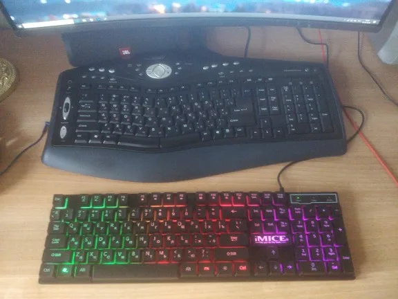 Хороший комплект за эти деньги, свет приятный, не раздражает. Клавиши имеют хороший отклик, быстро привыкаешь.