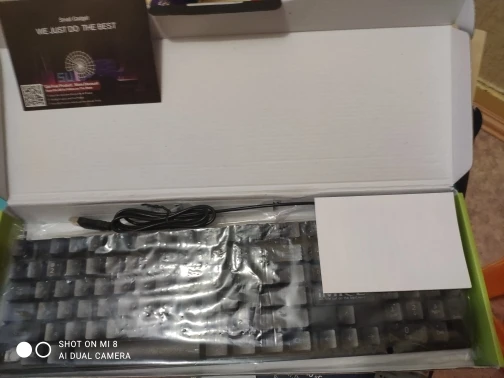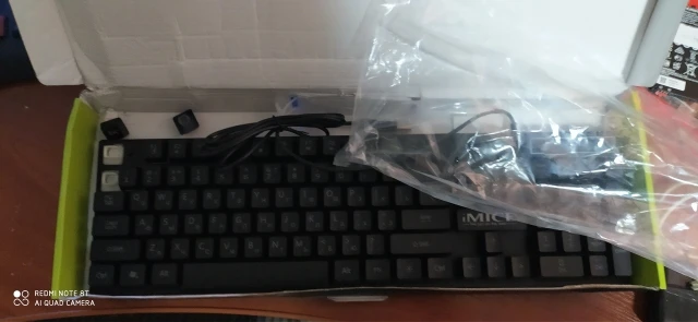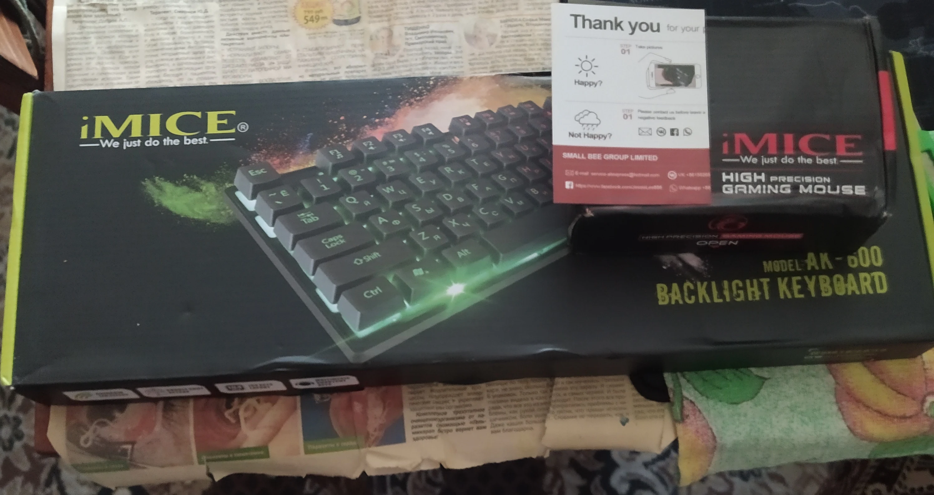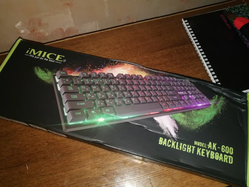 Заказывал из склада в России, шла посылка 10 дней. Коробки мятые но клавиатура и мышка целые. Клавиатура в отличном состоянии а вот у мышки есть мелкие ньюансы к примеру надпись на мышке затерта ( будет видно на фото ) и переход подсветки с одного цвета на другой переодически дребезжит а не плавно как должно быть и ещё яркая подсветка не мышке только когда она в движении а вот как остановил и пару секунд подсветка становится слабенькой ( днём почти не видно ). В целом на работу не влияет и норм! По клавиатуре нариканий нет! За свои деньги считай дешман! Мышка если что с безшумным кликом.