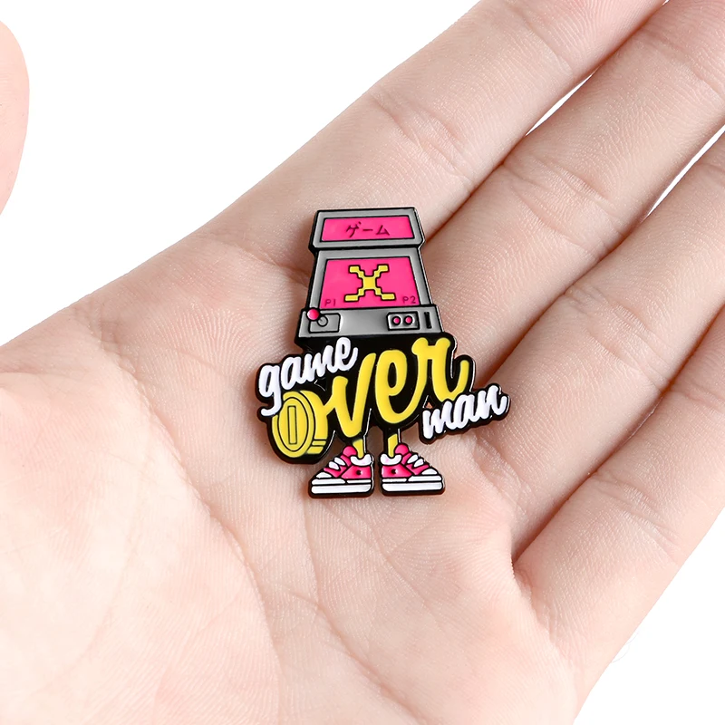 Игровой автомат с эмалью pin Game OVER! Броши для игрового контроллера в стиле ретро, Значки для влюбленных игр, аксессуары