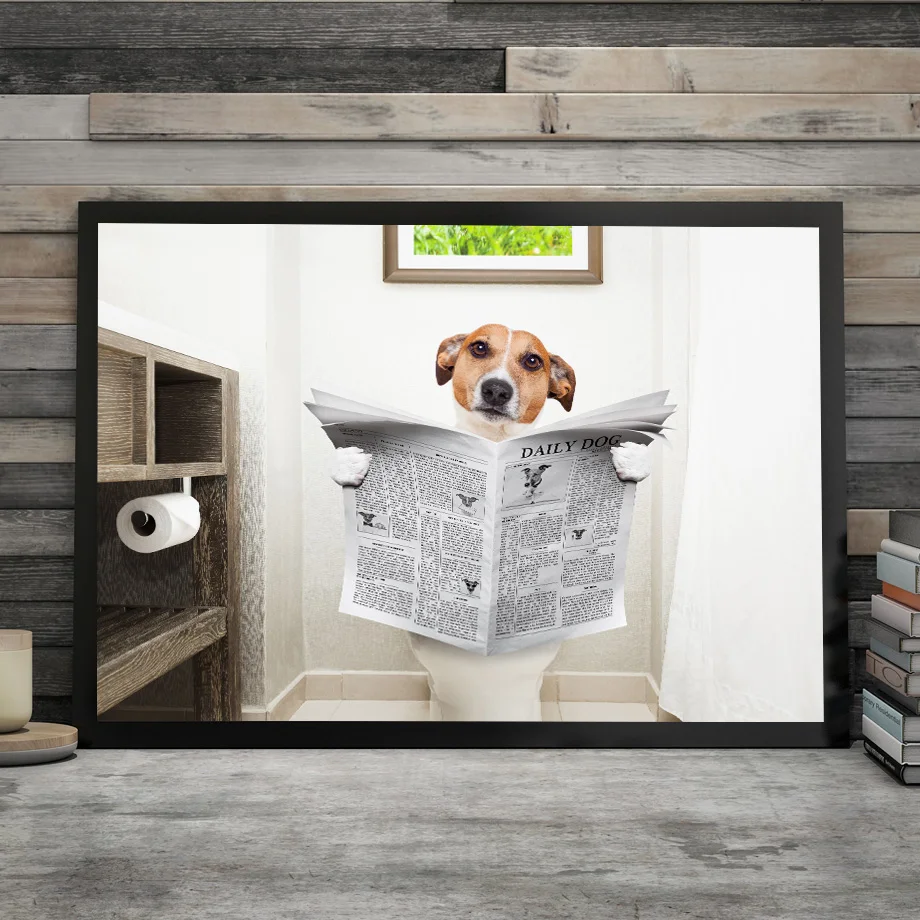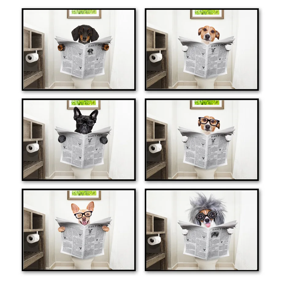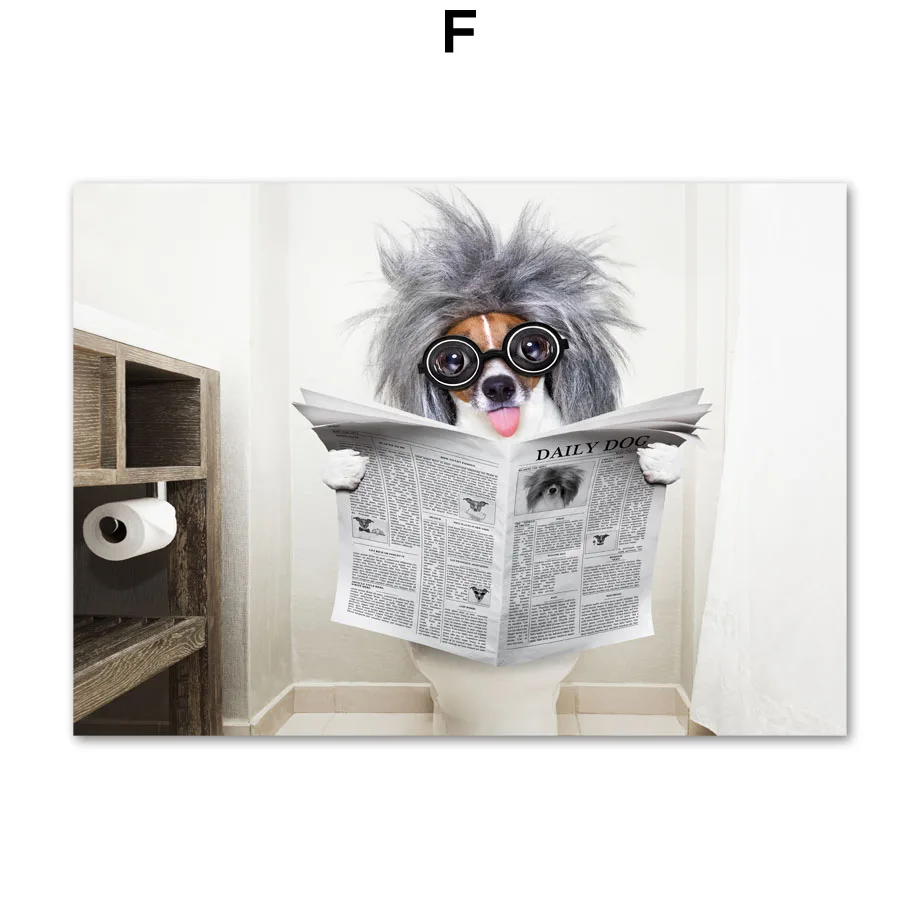 Настенная картина для ванной и туалета, собака, газета, холст, Раскрашивание, скандинавские постеры и принты, настенные картины для украшения гостиной, туалета