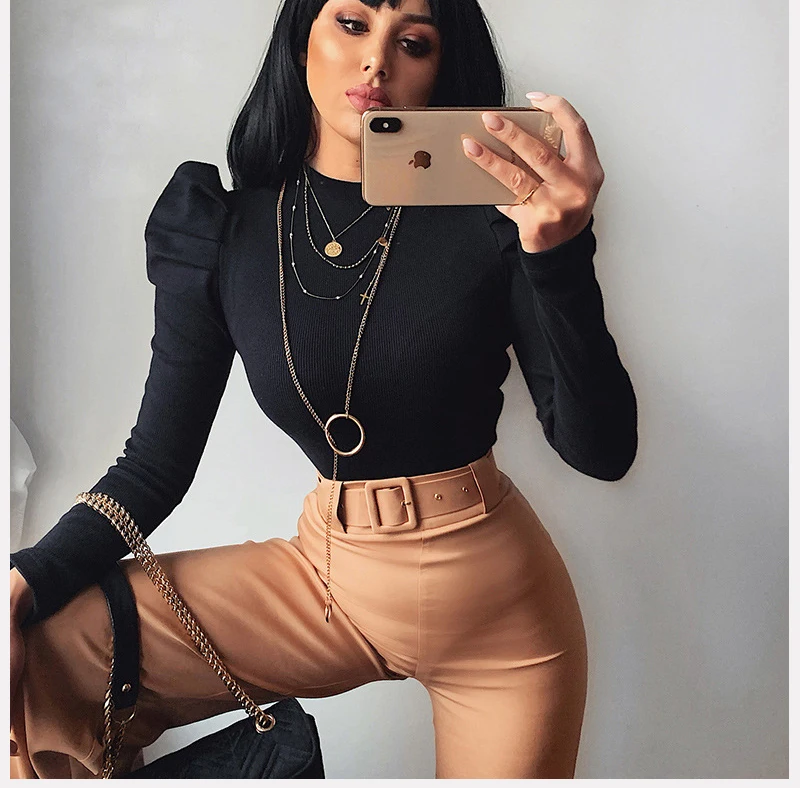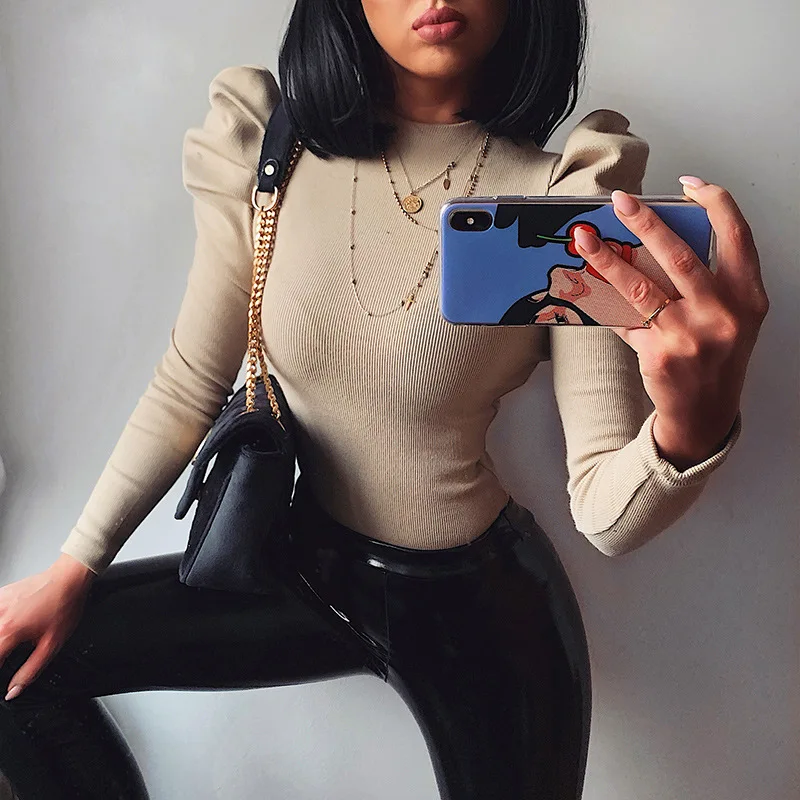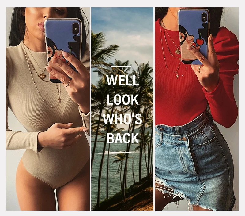 Женское трикотажное боди с длинным рукавом, повседневное однотонное облегающее боди на осень и зиму, 2021