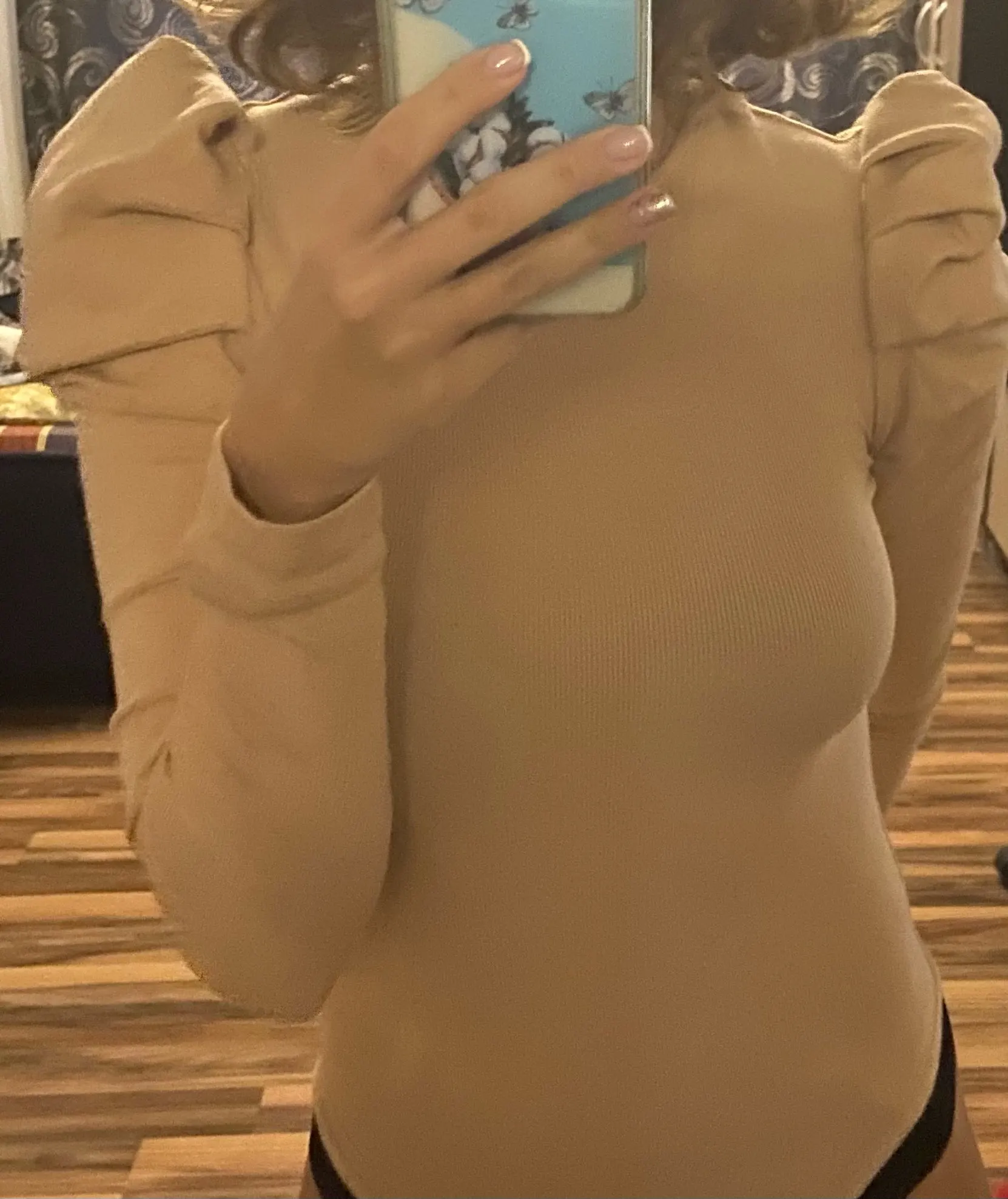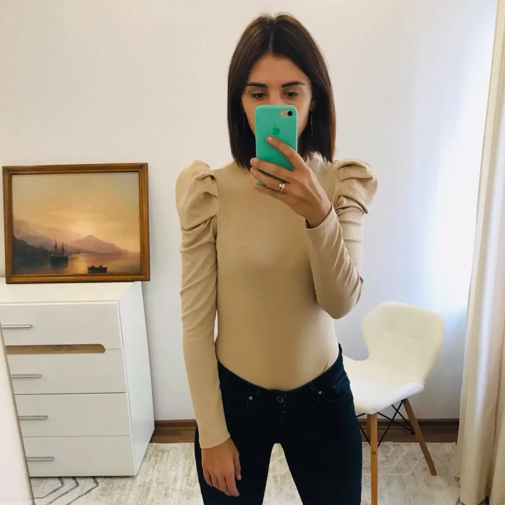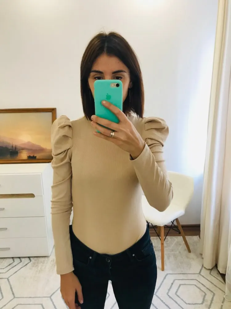 Мой инстаграм: sveta_vi_ Телеграм: lightandfashion Трикотажное боди. Очень эффектное и стильное! Качество отличное, сшито аккуратно. Плечи фонариками, хорошо держат свою форму. Материал хлопок, мягкий, приятный к телу, не просвечивается. Горловина овальная. Рукава не короткие. Боди в трех цветах, я выбрала бежевый. На мне размер S. Мои параметры: 83-63-90 см, рост 164 см.