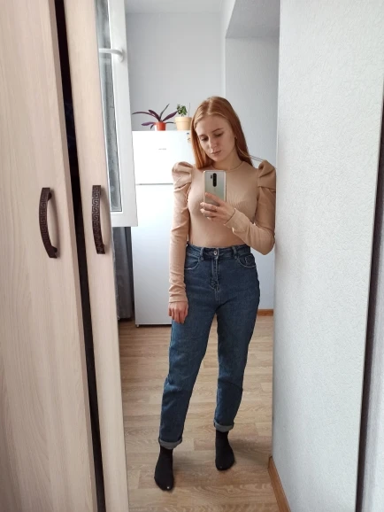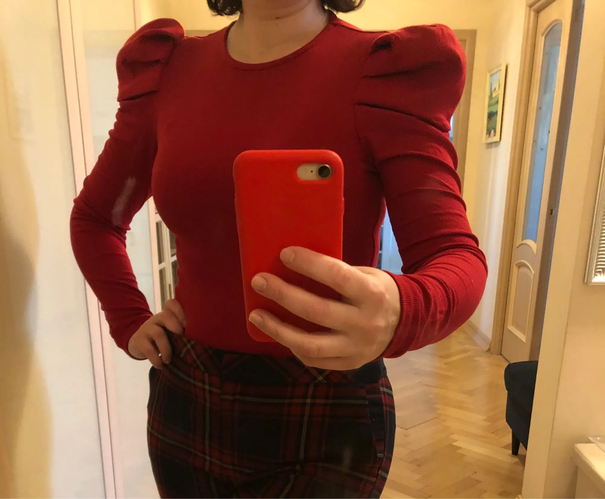 Доставка была не затяжной, упаковка - аккуратной. Боди приехало без брака, посторонних ароматов, только лишь с прямостями, которые легко устранить паром. Ткань эластичная в рубчик - приятная к телу и легко садящаяся по фигуре. В боди комфортно, не смотря на то, что это полиэстер. Размерный ряд хороший и не маломерит. На свои объёмы 86-67-94 и рост в 162 см я выбрала Sку, которая устроила меня целиком и полностью. Оригинальность - в рукавах! Акцент сделан на плечики - по окату выполнены крупные складки. В плечики изнутри вшита более плотная ткань, которая создает форму, плечики не опадают. А приобретением довольна.