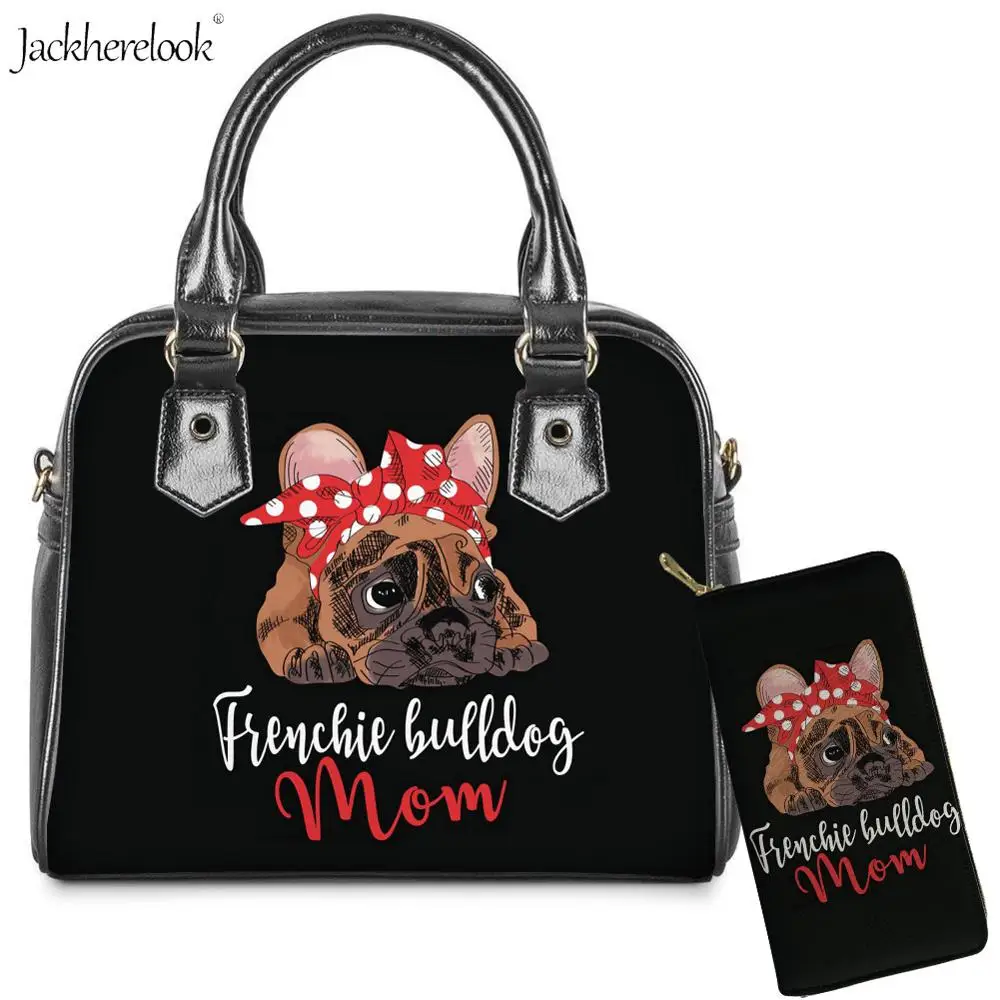Jackherelook 2 шт. французская бульдог мама кожаная сумка через плечо и кошелек Мопс Собака принт кросс-бодимессенджер тоут Женские повседневные сумки
