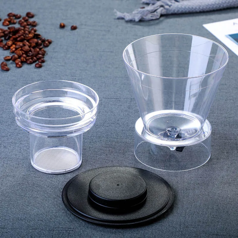Пластиковый/стеклянный фильтр большого размера для легкой заливки льда и воды.Фильтрация кофейной гущи с тонким фильтром позволяет эффективно капать кофейную жидкость, но не чрезмерно извлекать, так что вкус не кислый и вяжущий.Теплое напоминание: оставьте небольшой зазор в процессе использования, в противном случае это повлияет на скорость, если поток ледяной капли.