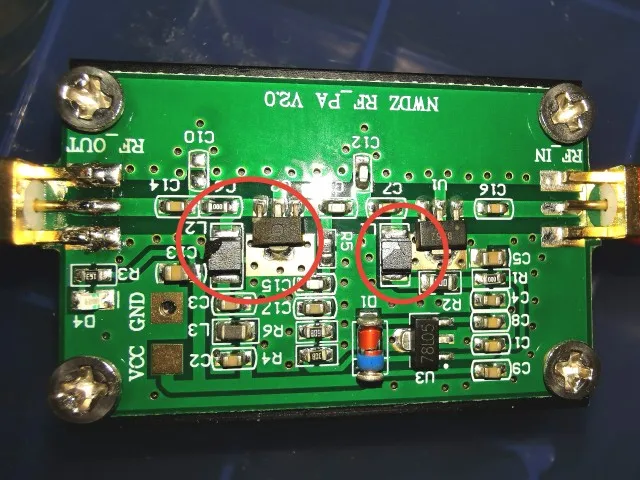 Типичный коэффициент усиления мощности этого радиочастотного усилителя составляет 35 дБ.