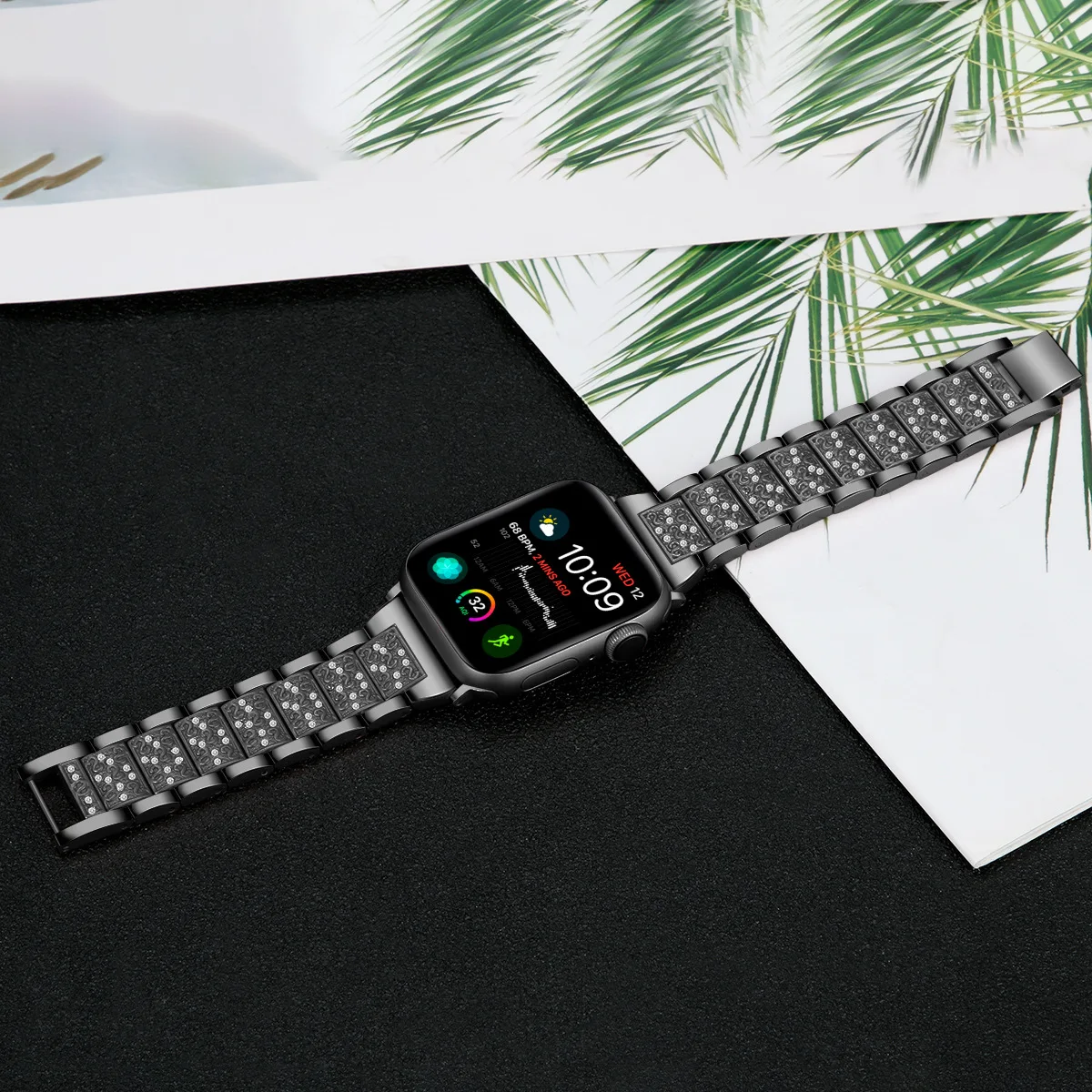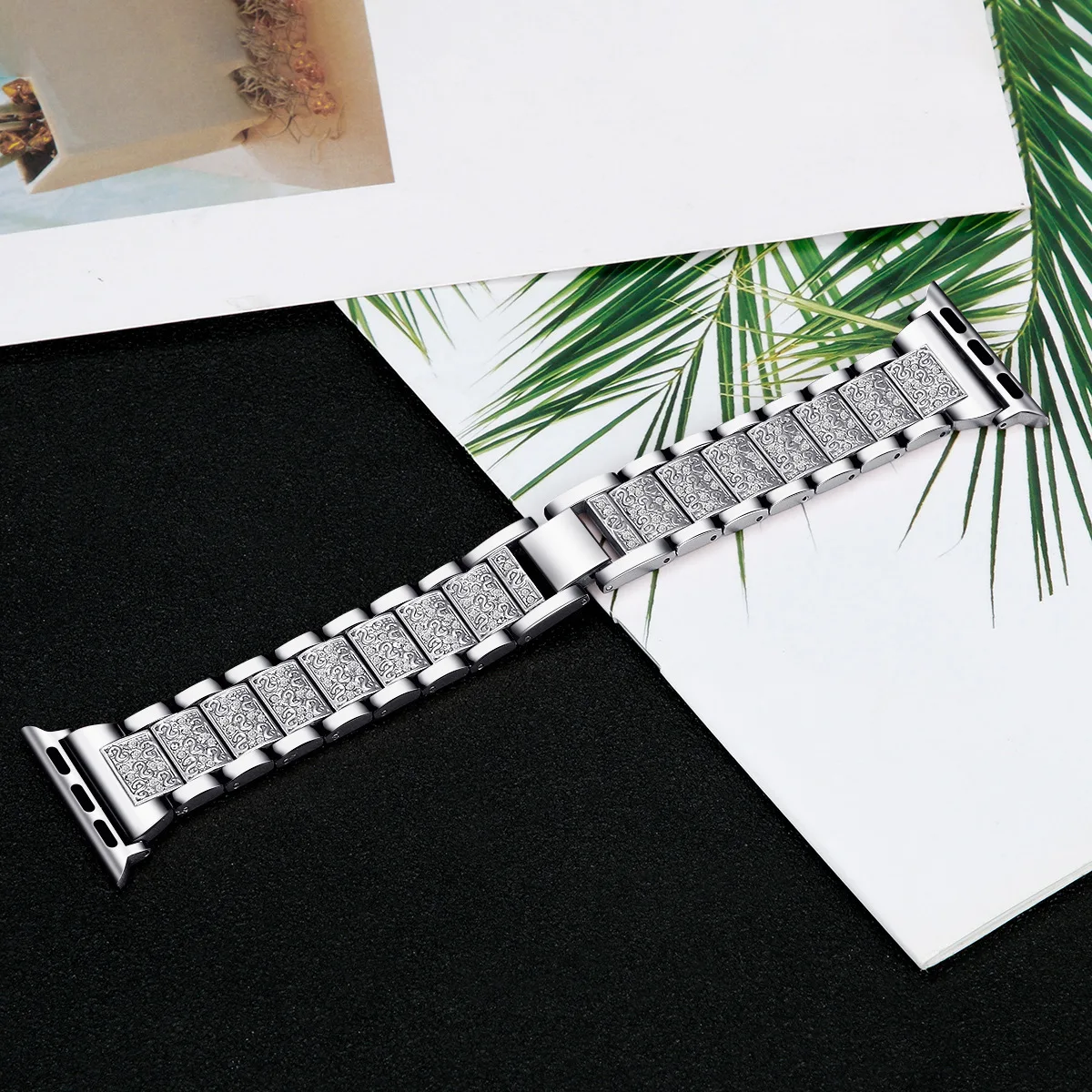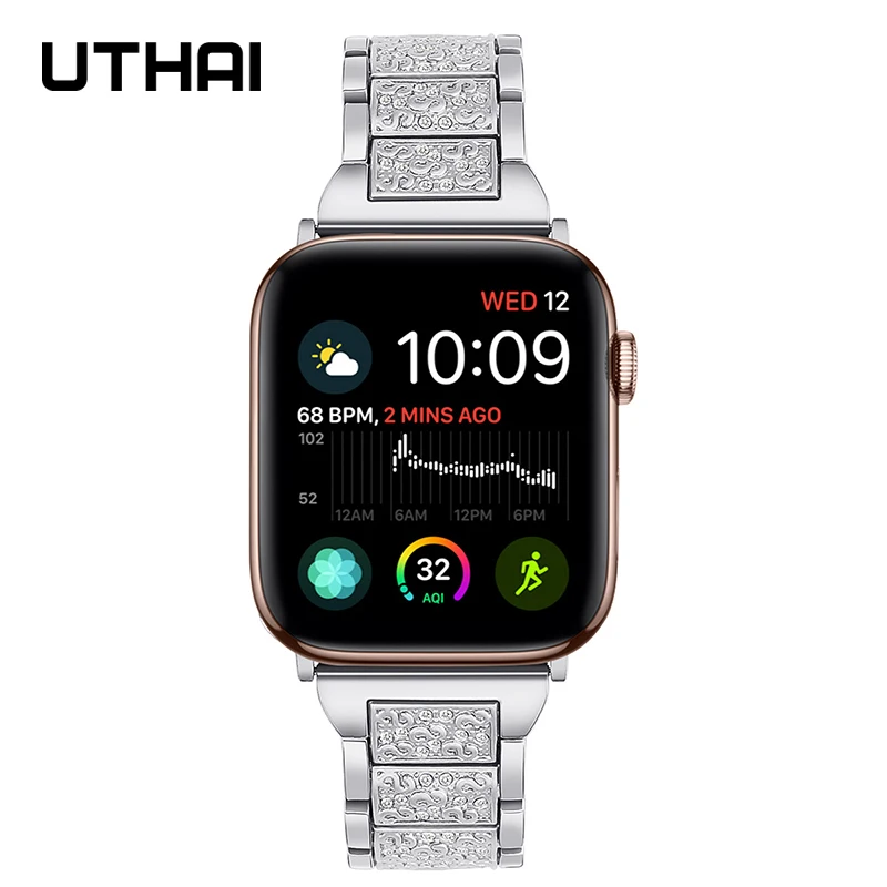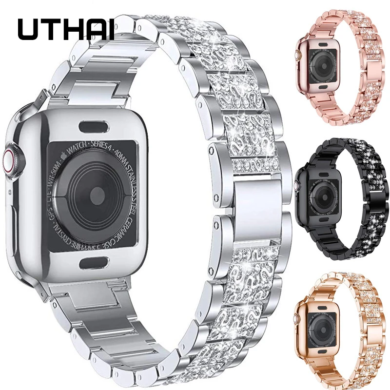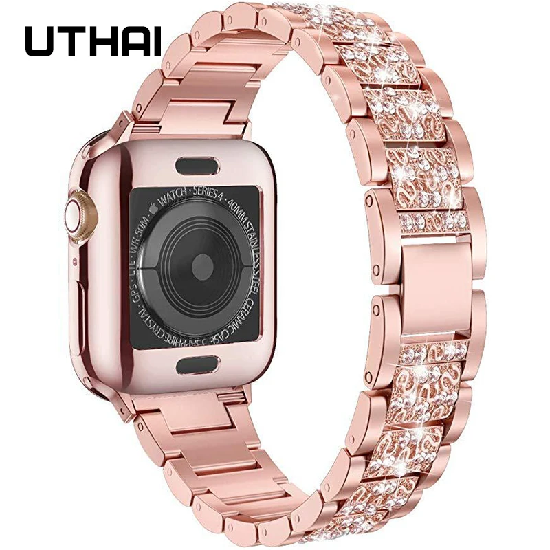 Ремешок UTHAI P50 из нержавеющей стали для Apple Watch band 44 мм 40 мм, алмазный браслет для iwatch6 5 SE 4, браслет для Apple series 321