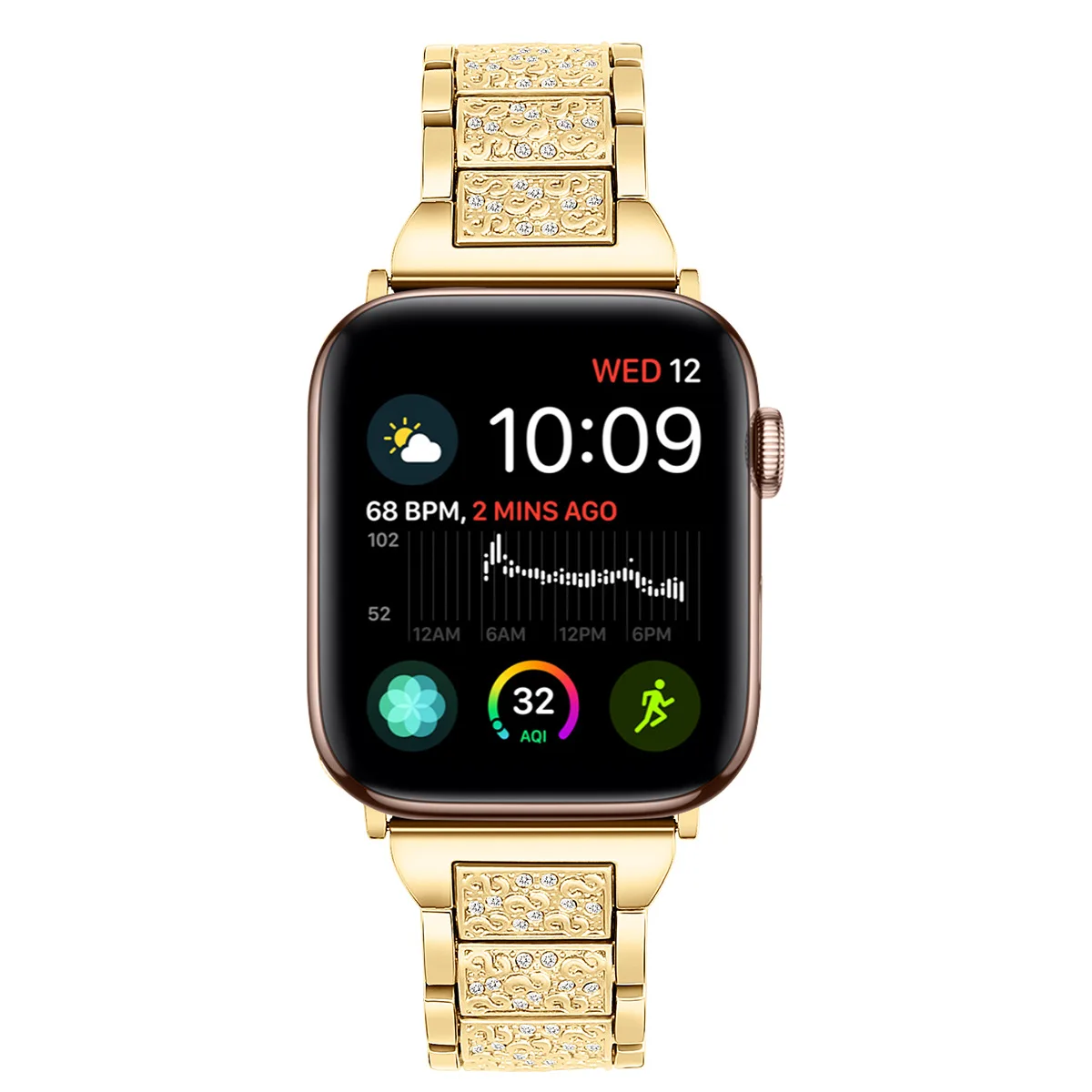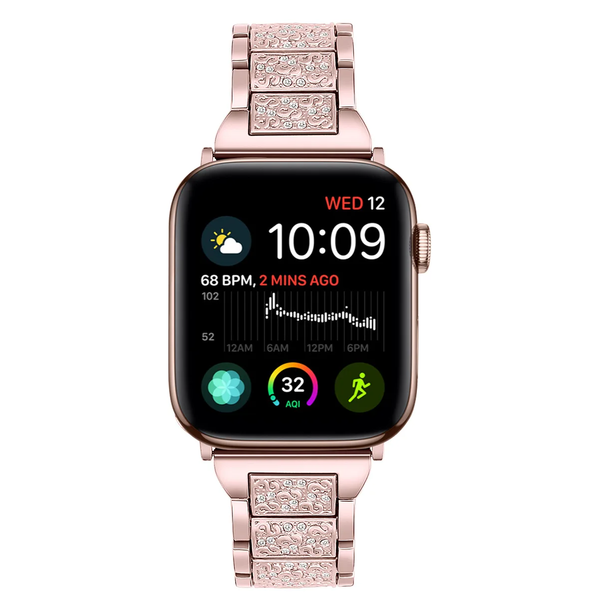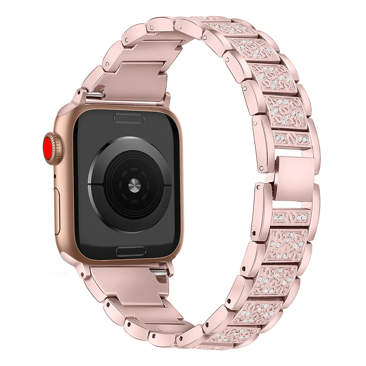 Ремешок UTHAI P50 из нержавеющей стали для Apple Watch band 44 мм 40 мм, алмазный браслет для iwatch6 5 SE 4, браслет для Apple series 321