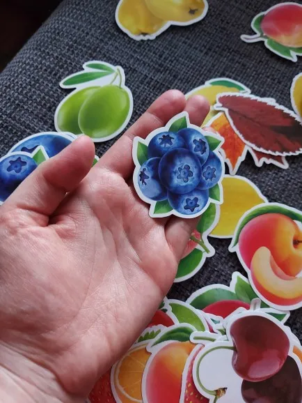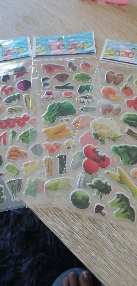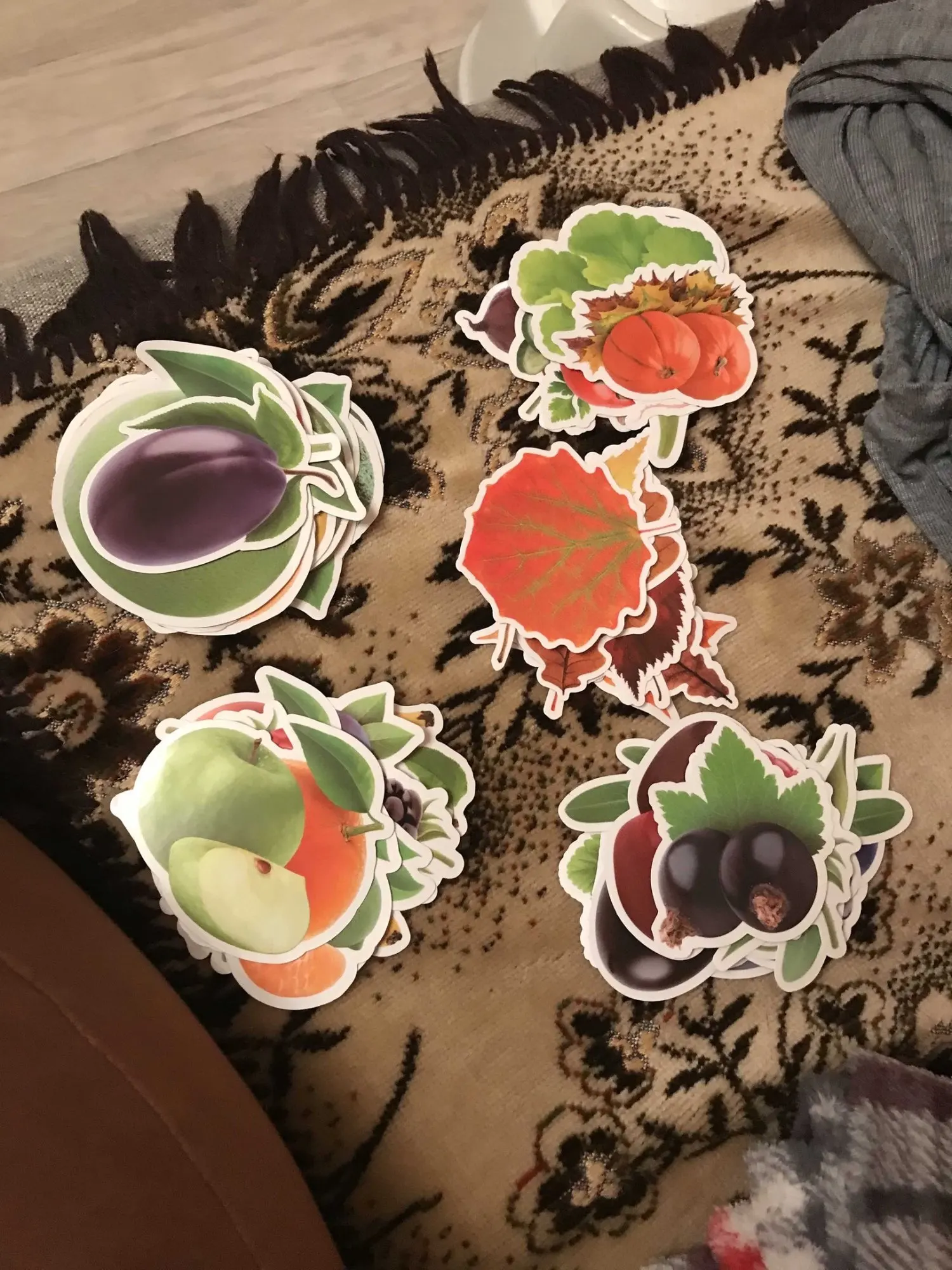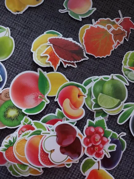 Прекрасные! Используем с дочкой вместо карточек, учим фрукты и овощи по этим наклейкам :) немного подрастем и тогда уже клеить начнем:). Очень яркие, печать четкая, цвета сочные и картинки реалистичные. Продавцу спасибо за быструю отправку!
