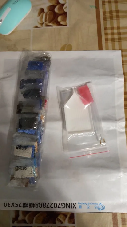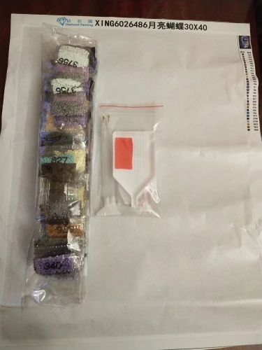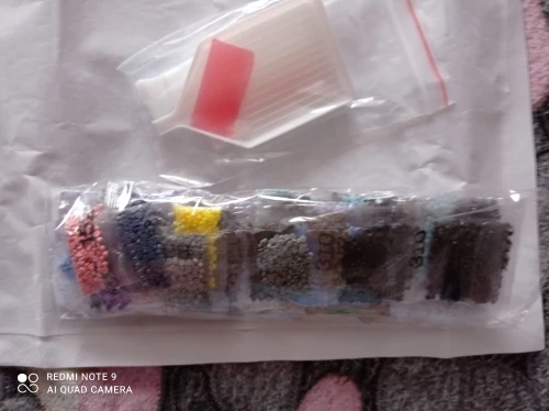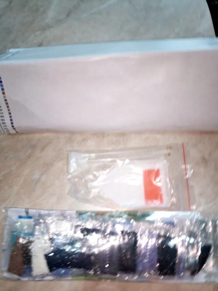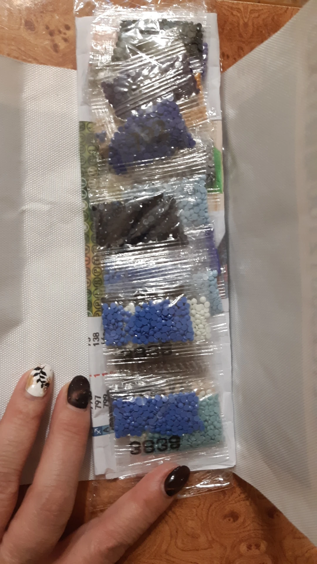 Посылка пришла очень быстро вместе с другими посылками. На первый взгляд все алмазики на месте. Упаковка не очень хорошая. Сама картинка накручена на пакетик с алмазами и в двух местах помялась. Но думаю это не критично. Буду собирать картинку. Спасибо.