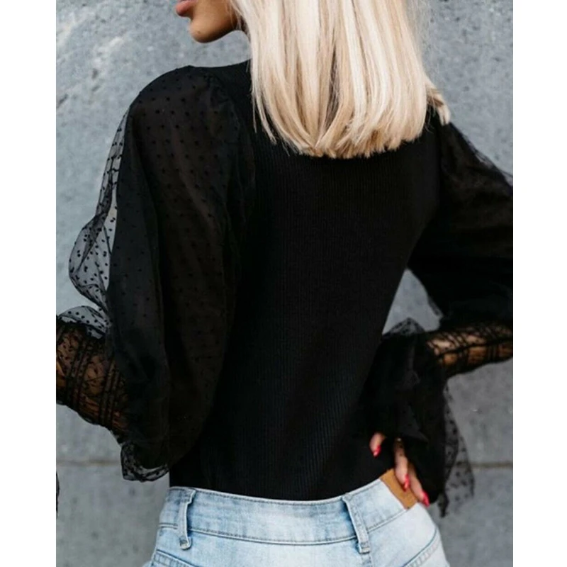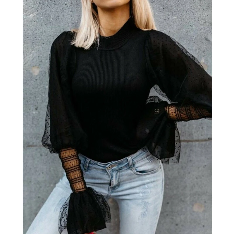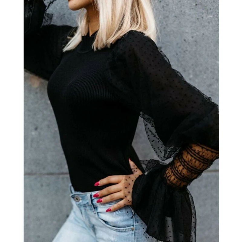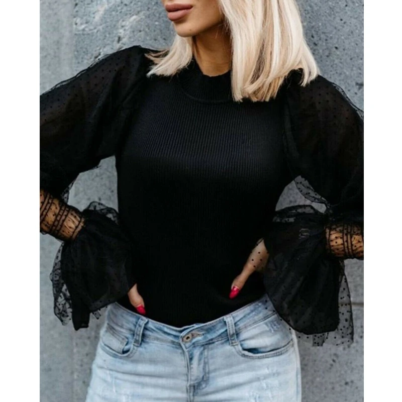 Женский вязаный свитер, пуловер с кружевными рукавами и оборками, джемпер с высоким воротником на осень и весну, 2020