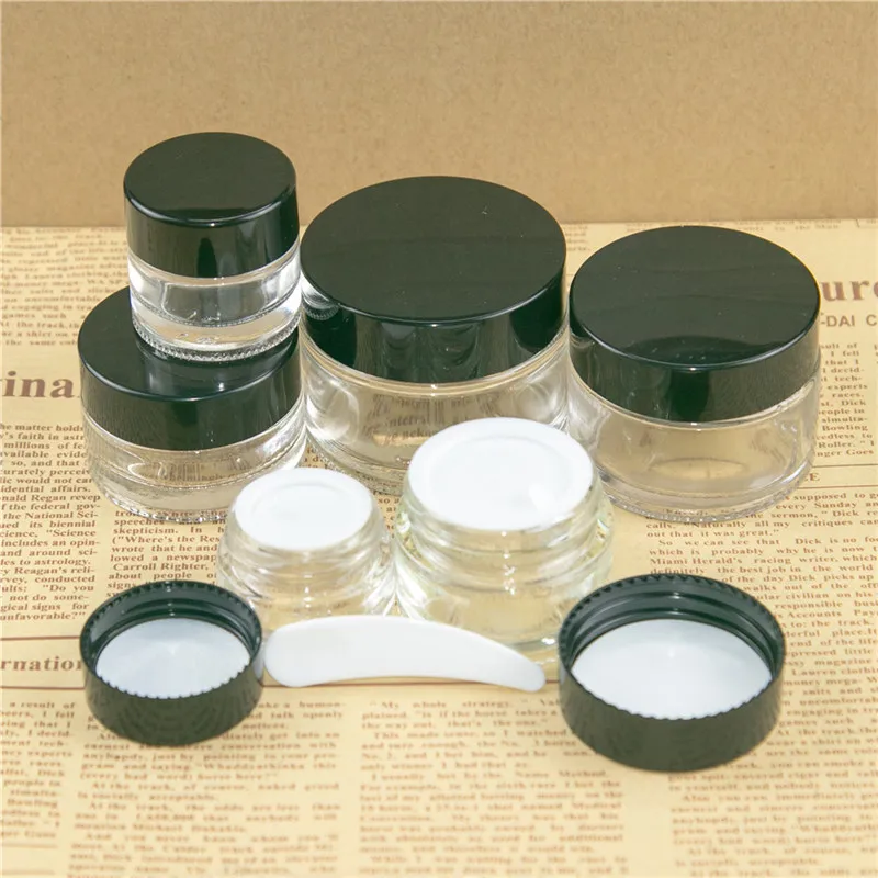 5g 10 г 1 5g 20 г 30 г 50 г стеклянная банка с винтом черная крышка горшки для макияжа Уход за кожей крем для глаз лица лосьон косметические бутылки
