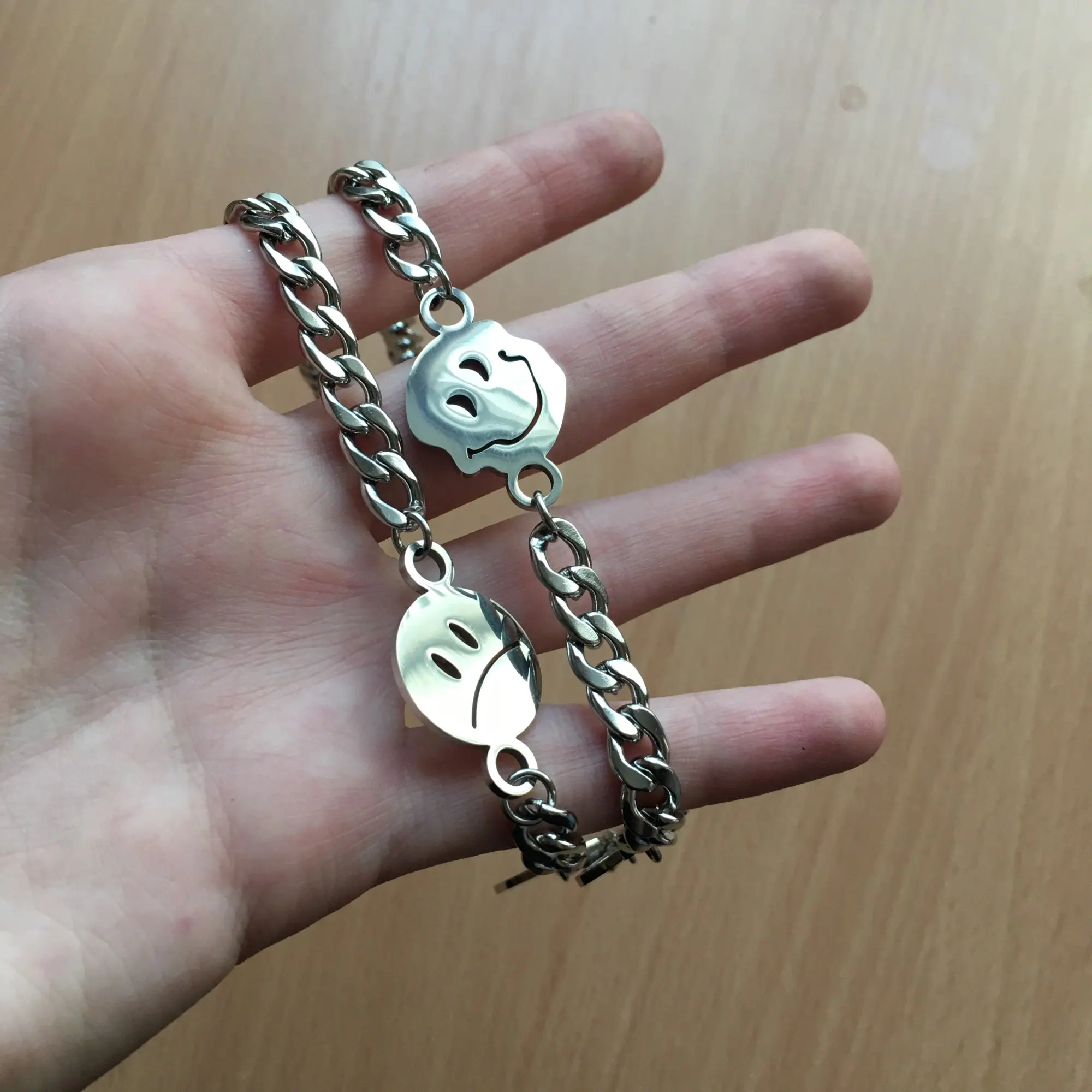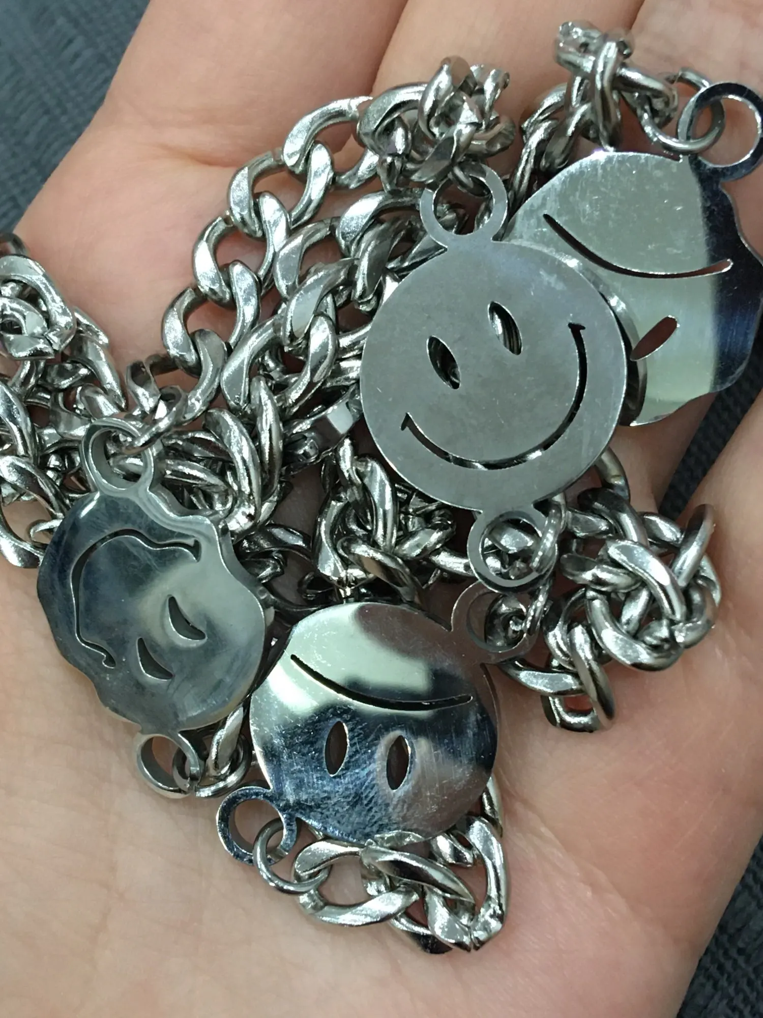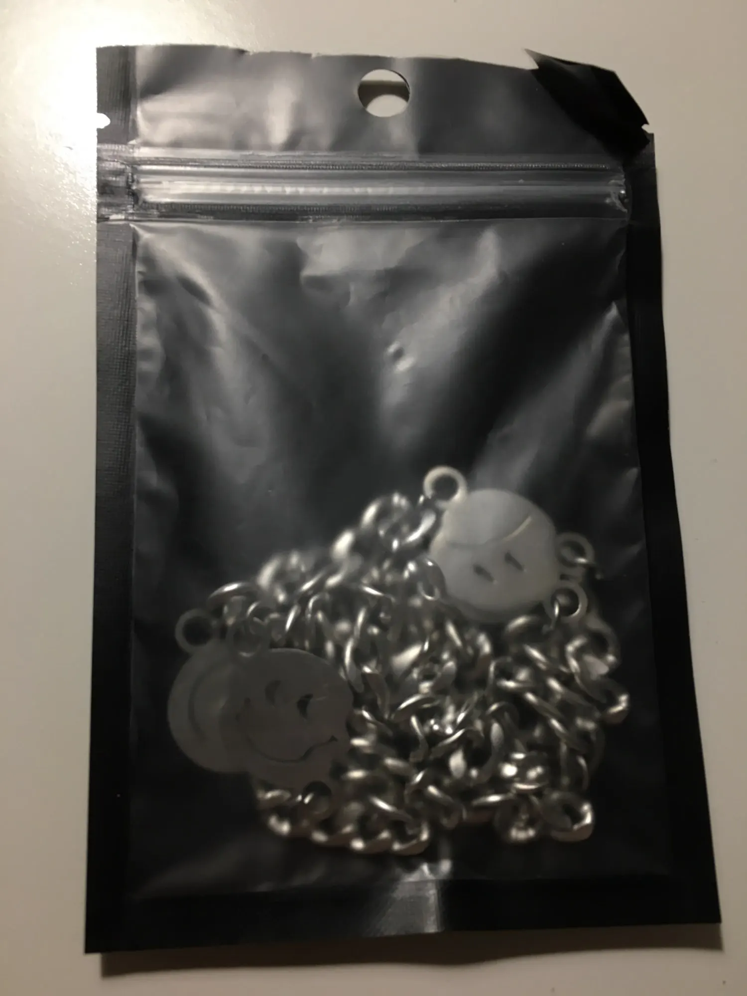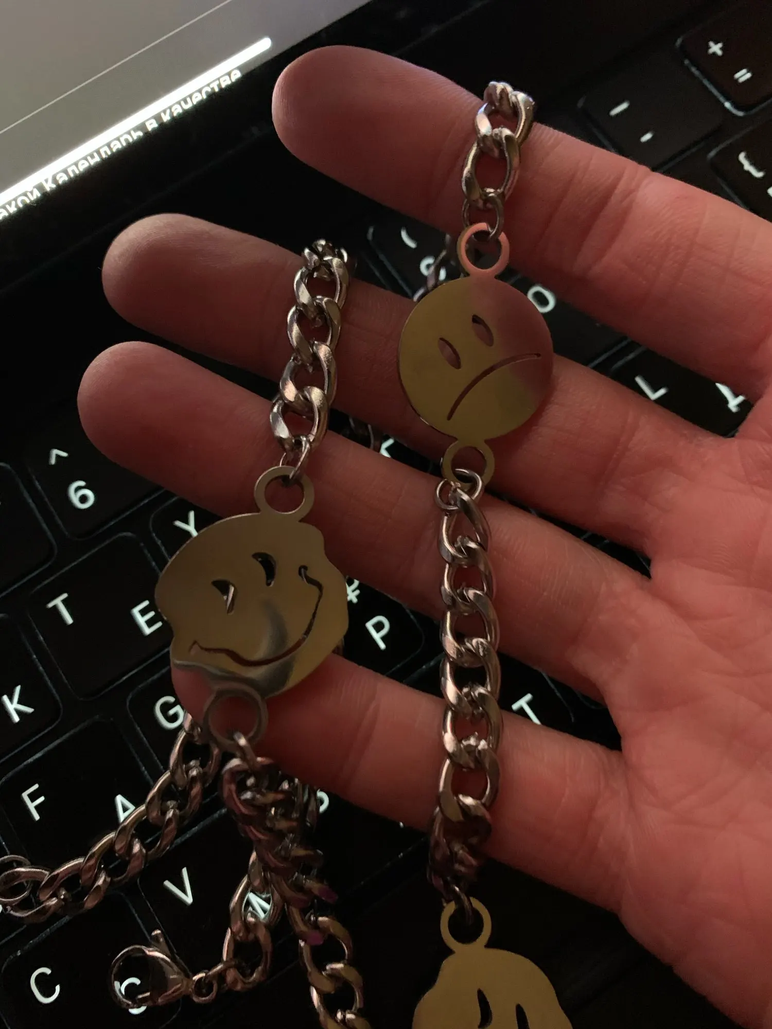 С продавцом не общался, цепь хорошая, но на смайликах остатся разводы от пальцев, так что осторожнее с этим. Пришло за две недели.