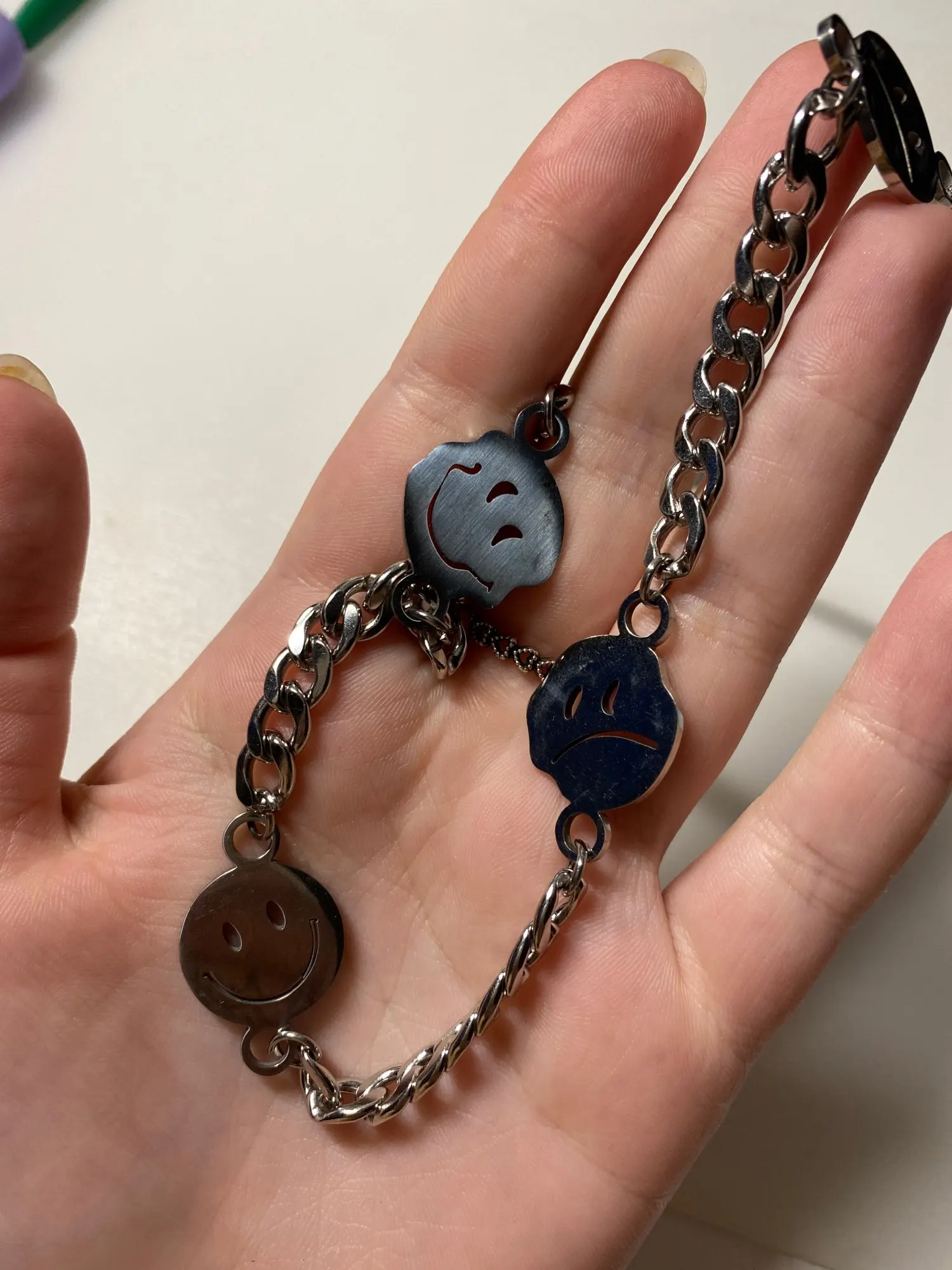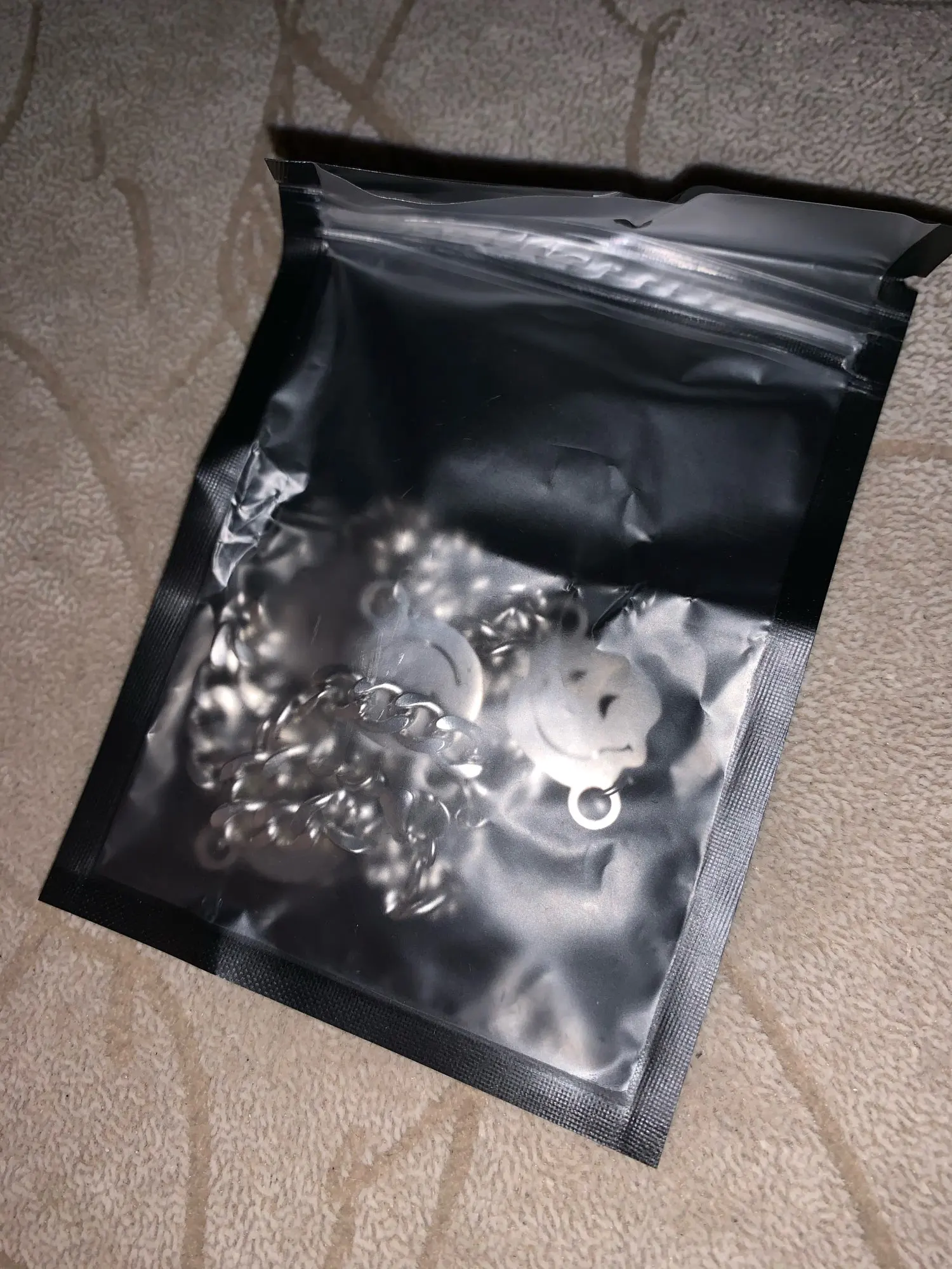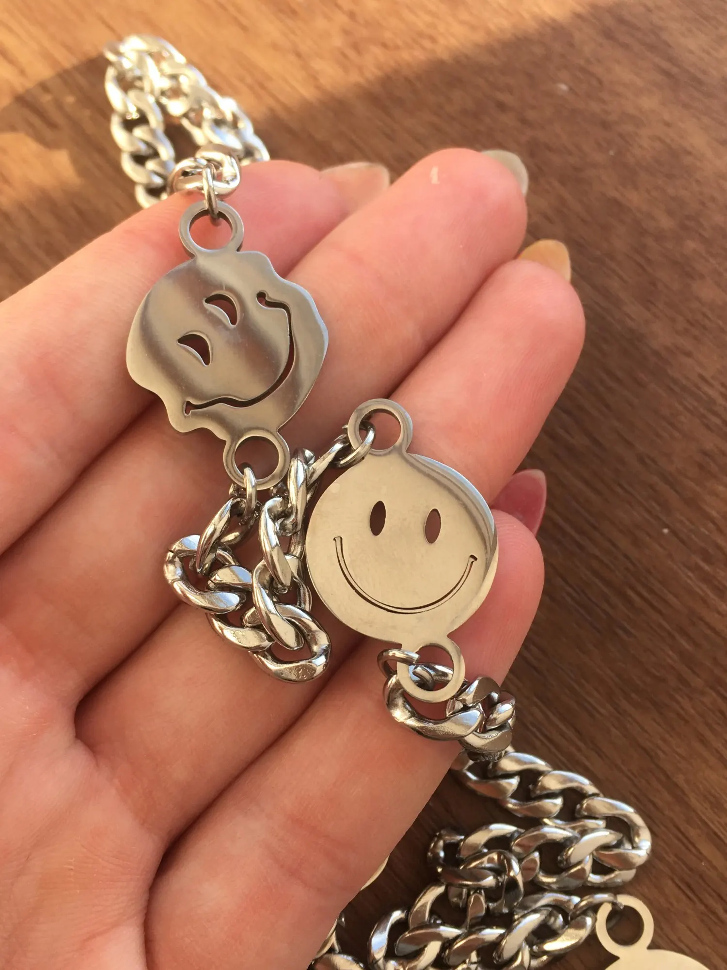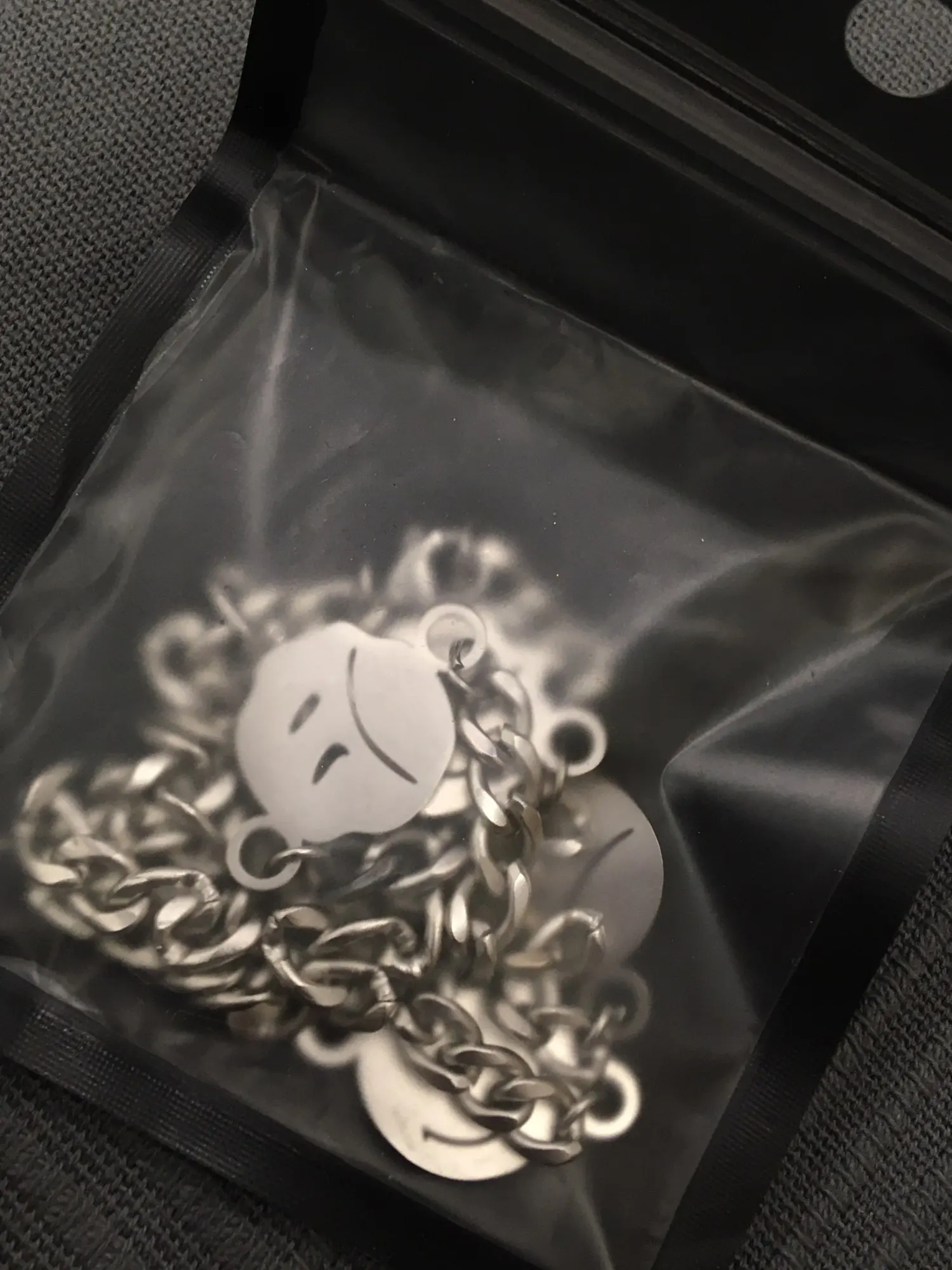 С продавцом не общался, цепь хорошая, но на смайликах остатся разводы от пальцев, так что осторожнее с этим. Пришло за две недели.