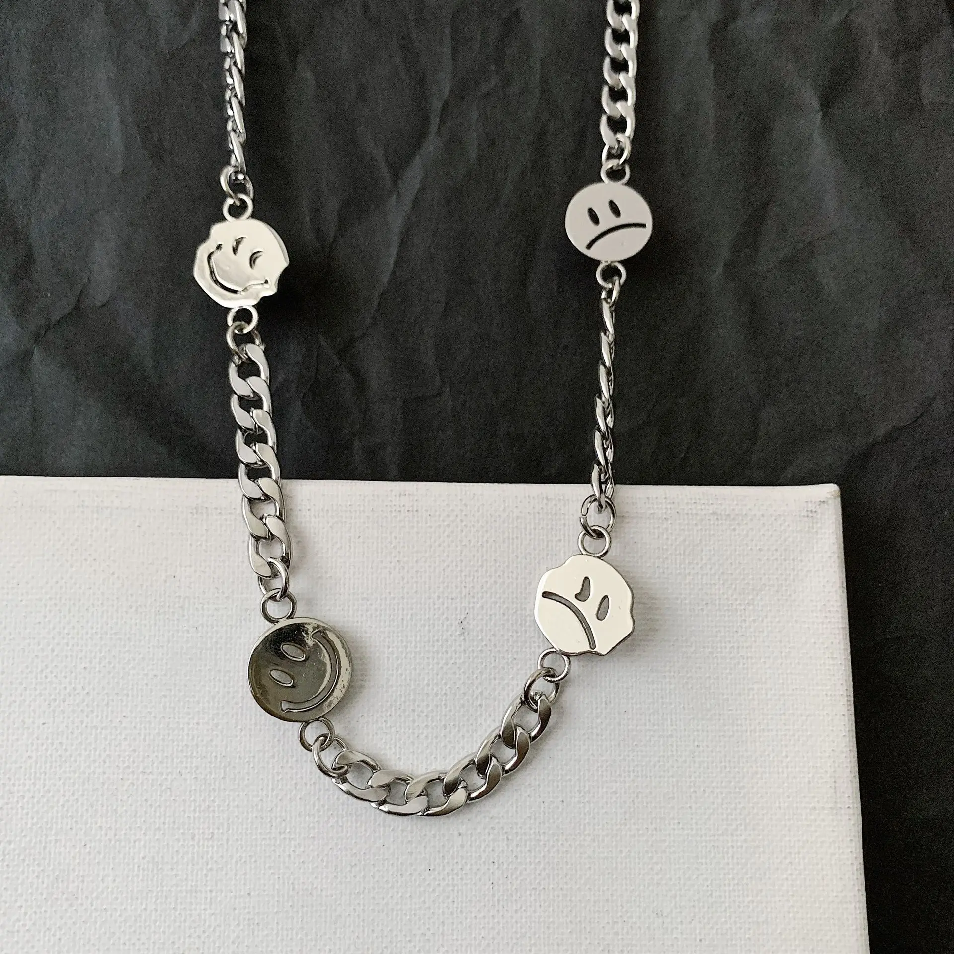 Ожерелье унисекс, из титановой стали, со смайликом, в стиле хип-хоп, 2020