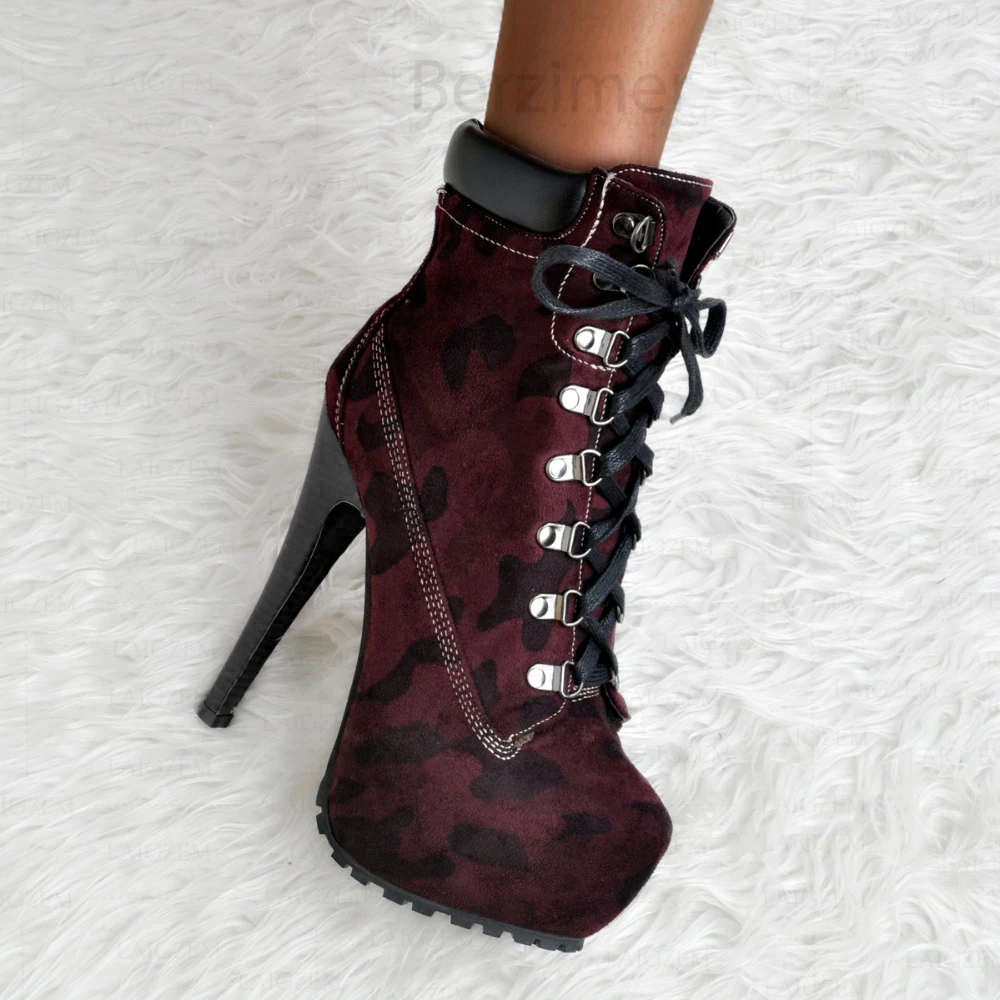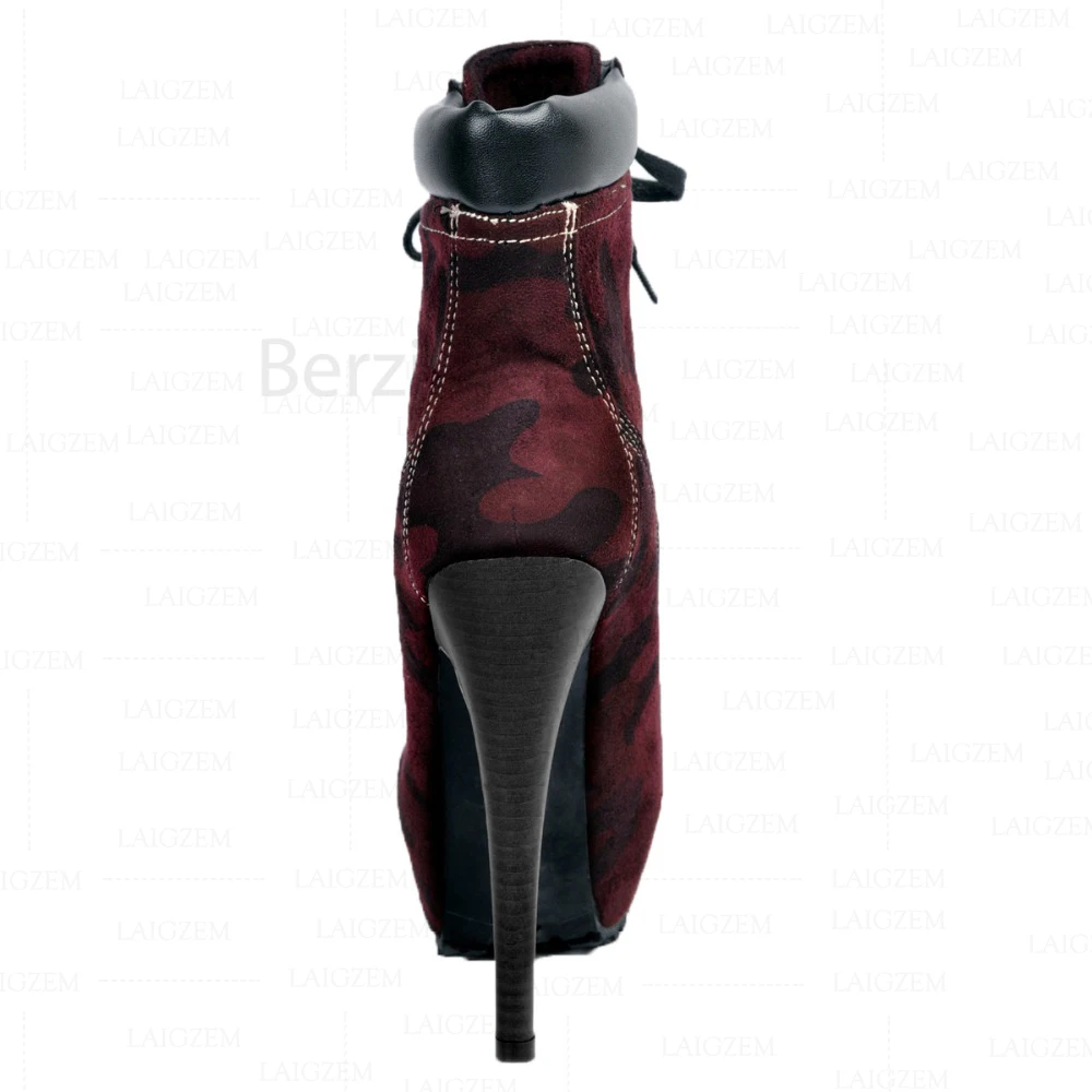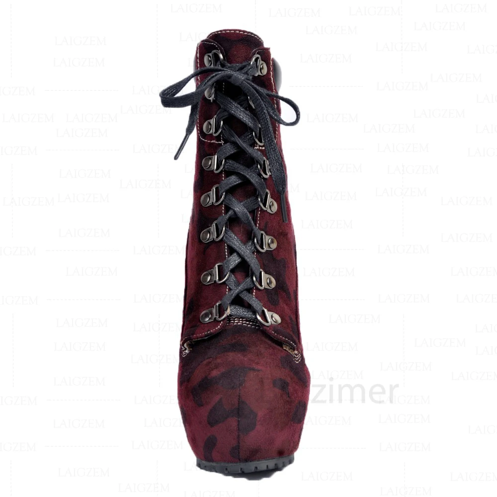 BERZIMERженские ботильоны на платформе со шнуровкой; Камуфляжные Ботинки на каблуке; Zapatos Mujer; Женская обувь; Большие размеры 45 49 50 52