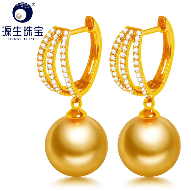 YS 9-10 мм натуральный морской жемчуг южного моря 18 К твердые желтые золотые висячие серьги изящные украшения для женщин